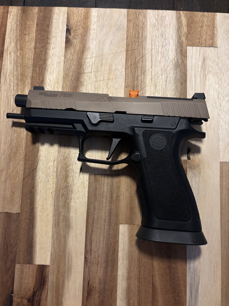 In new condition, never fired. The gorgeous VTAC version of the Sig P320. No trades, cash only, must present a valid Ak Drivers License and sign a bill of sale.