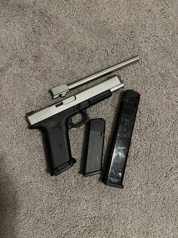 Lonewolf Glock 40 clone, 2 15 round Glock mags and a 30 round extended mag, basically everything about it is Glock besides a slimmer grip and better grip angle. Fiber optic sights and extra 9” barrel. $600