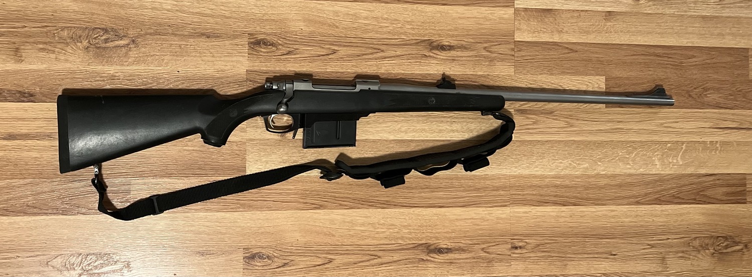 Ruger m77 chambered in .338 win mag, MDT magwell and 5 round magazine, Williams iron sights. $750 or trade