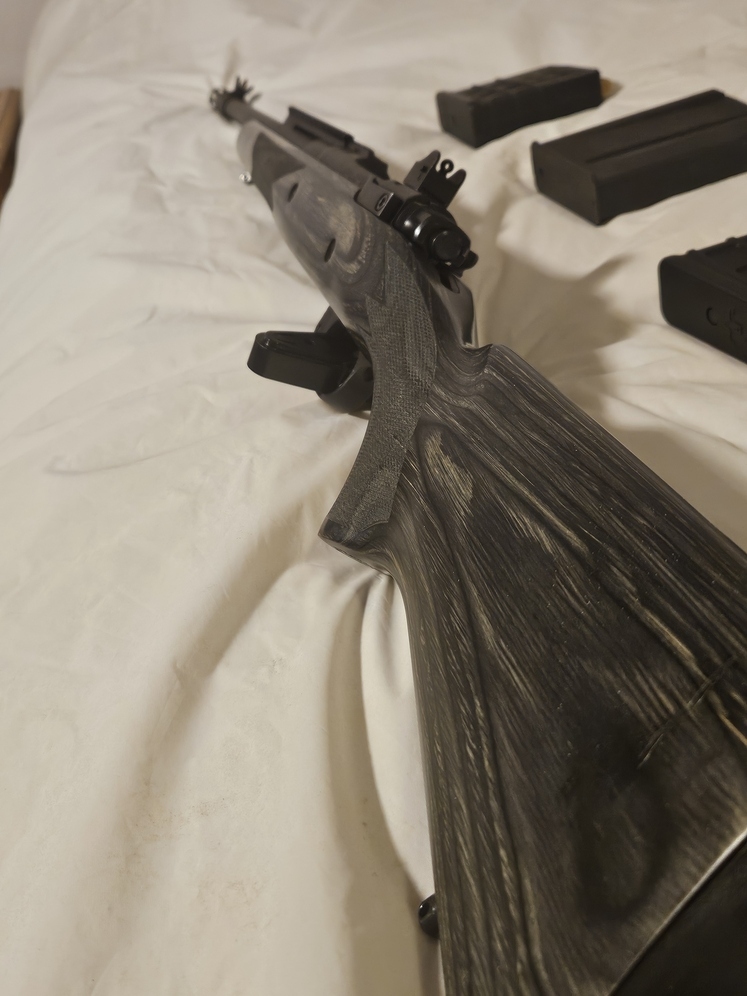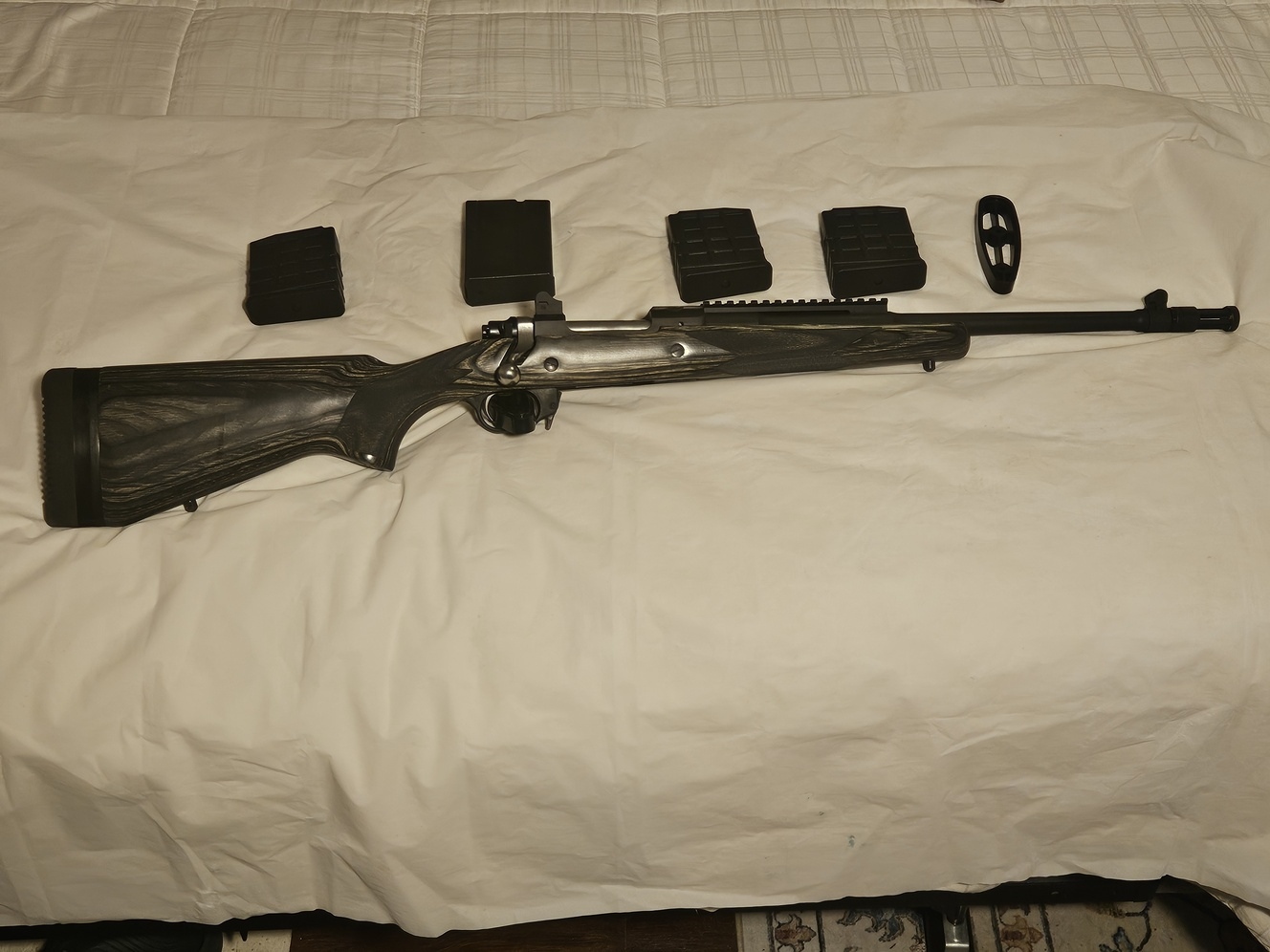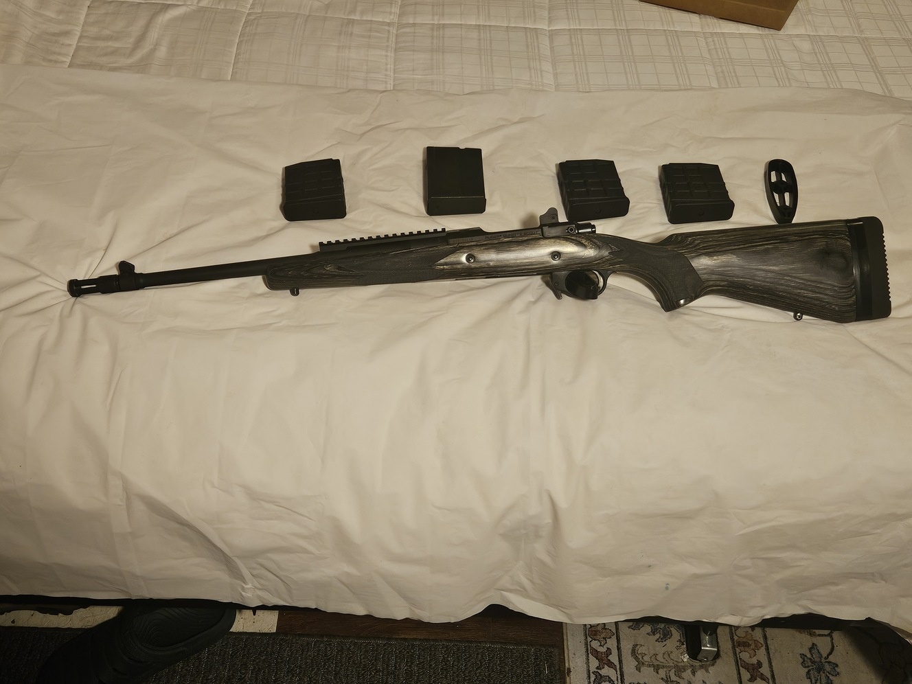 16 " barrel, laminated stock, flash suppresser, peep sight, picatinny rail for LER scope. Includes 4 ten shot Ruger magazines & stock spacers to custom fit LOP. Rifle shoots MOA, has excellent trigger & has been shot very little. Just thinning my herd. Rifle is in near perfect shape.