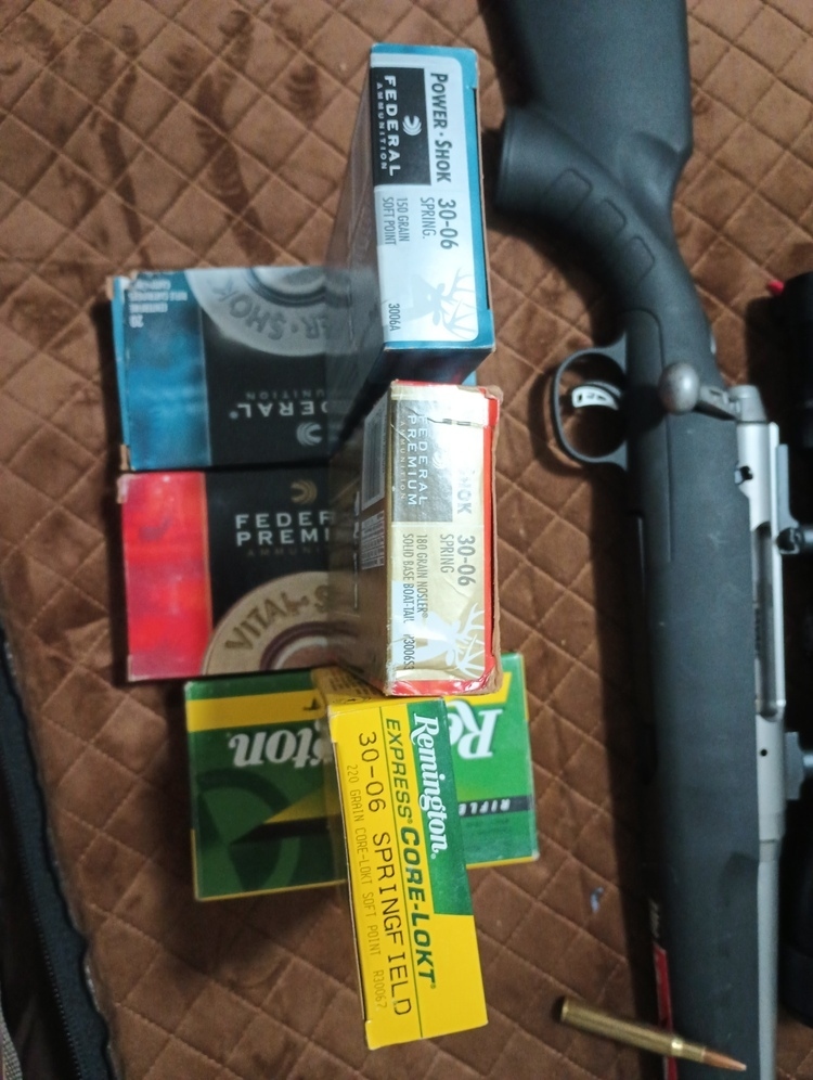 Savage axis rifle that I shot literally 40 rnds through. Burris scope. Soft case and 160 rnds. 40-150 grn. 40-180 grn-40-220 grn. Has a laser bore sight and i have empty shells in the box. I don't hunt and don't. Use it I will trade let me know what u got