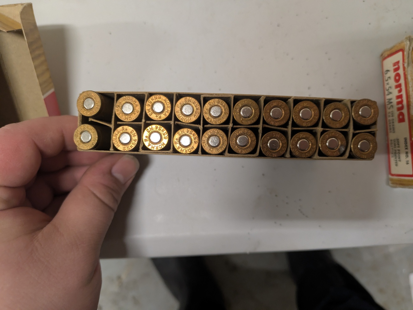 6.5x54 Mannlicher Schoenauer Ammunition. Selling two boxes of Norma 6.5x54 mannlicher Schoenauer ammunition. 39 rounds in total. $50.00. Text is preferred.