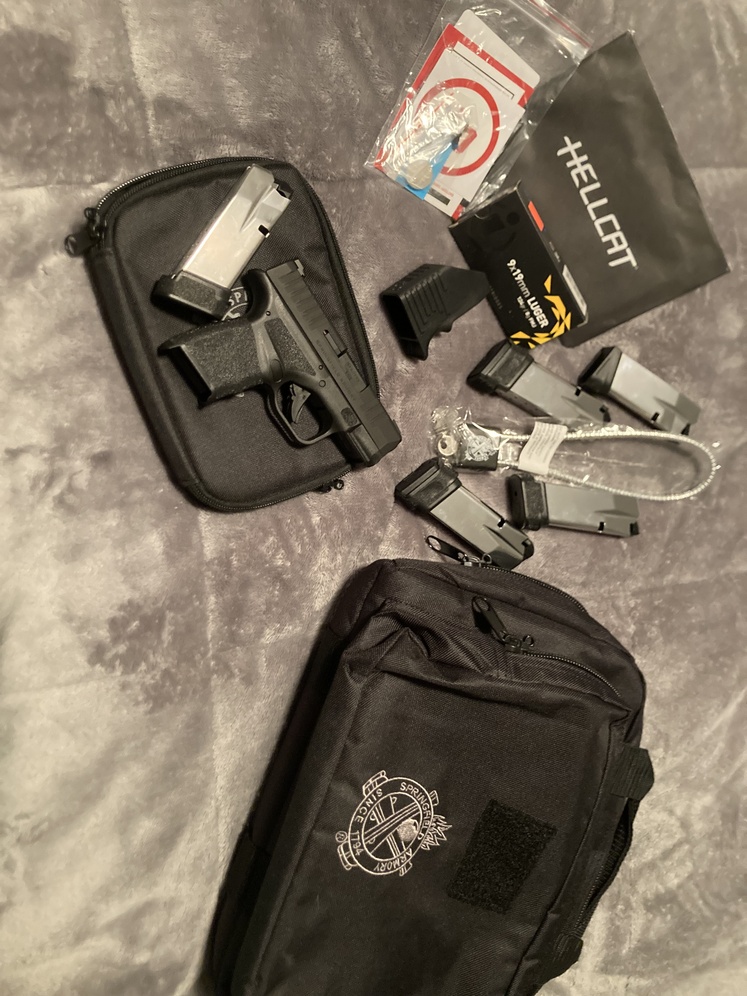 Brand new never shot Hellcat 9x19mm comes with box of shells, six clips, two carrying bags, etc. $500 please te t or call