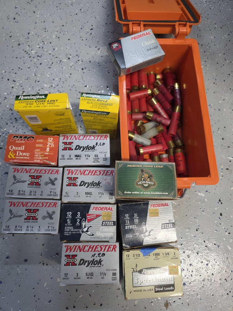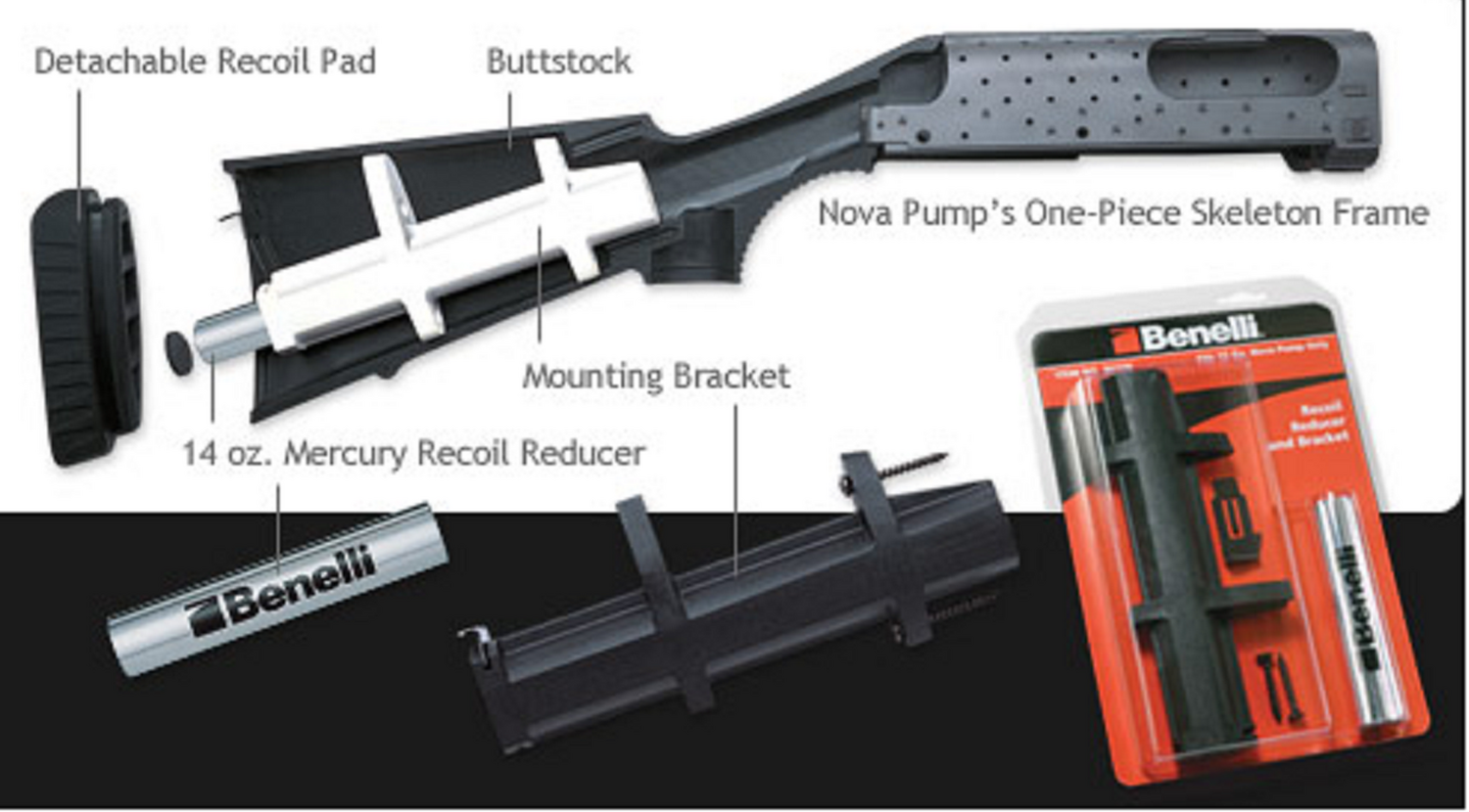 Lightly used Benelli Nova Pump, 12 gauge shotgun, 3-1/2 chambered with Benelli Nova 12 gauge recoil reducer installed and Benelli Nova Magazine Tube Extension (I have the original too) Also assorted shells and other ammo (see pic) Also included is the Benelli gun case that holds all 3-chokes, and choke wrench Barrel length is 25-26" depending on where you measure from