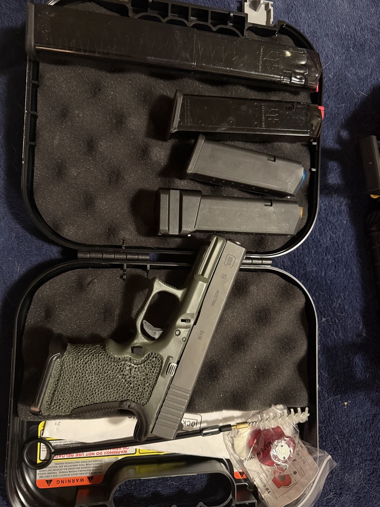 Glock 19 gen 3, 9 millimeter. Less than 100 rounds through it.