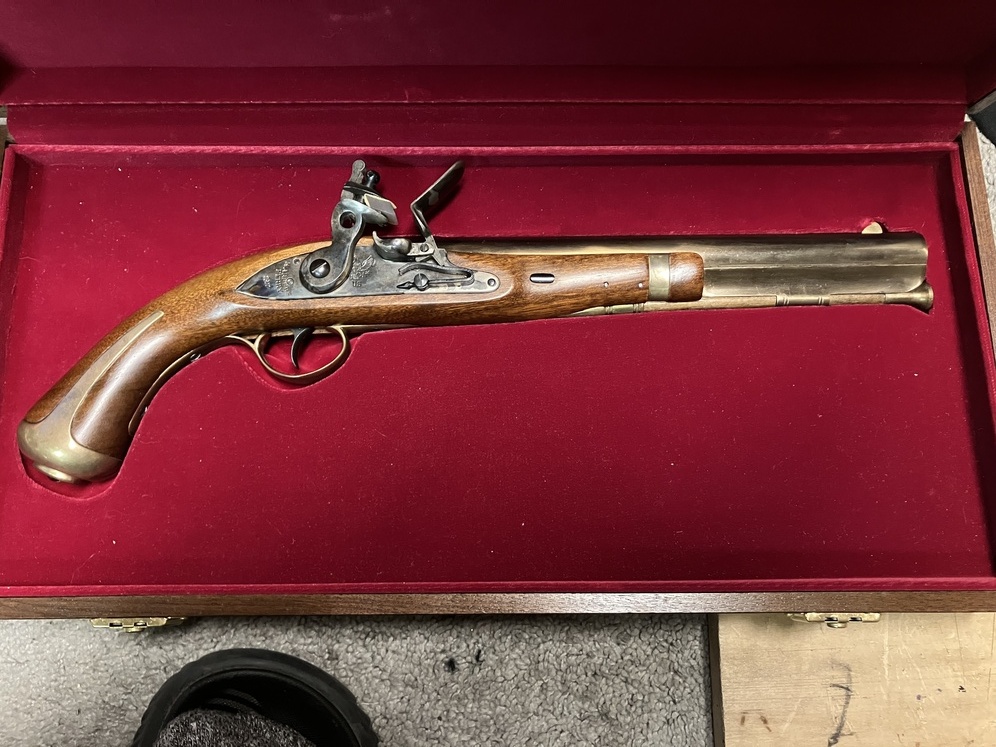 .54 cal 1807 Harpers Ferry model flintlock made by David Pedersoli, in Italy. This appears to be unfired and comes with a display case and orginal paper work.
