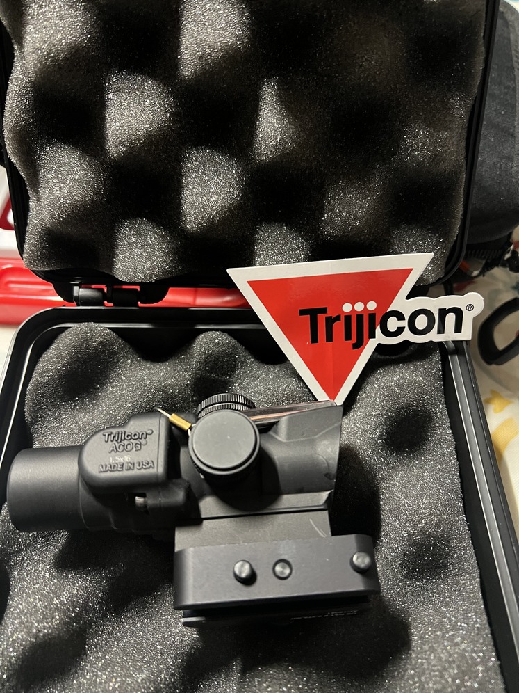 Brand new trijicon acog 1.5x mounted but never fired or zeroed. Dual illuminated with fiber optic and tritium