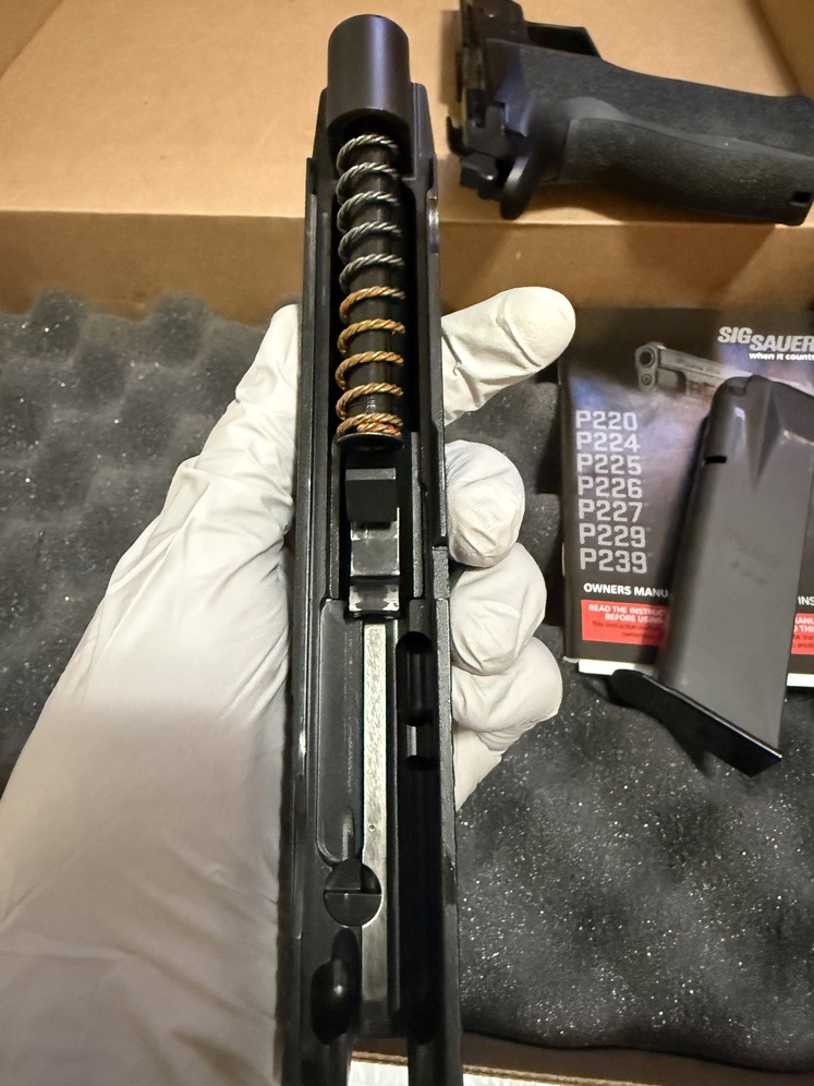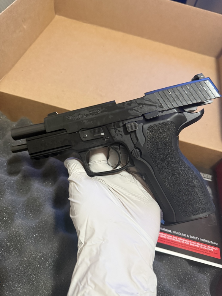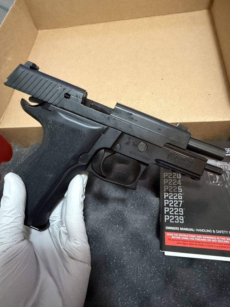 This is a CPO (Certified Pre-Owned) P226. This means that it was refurbished at the Sig factory in Exeter, NH. It was refurbished in 11/2023 and I purchased it in 1/2024. This baby is butter smooth! I put a box of 50 rounds through it shortly after its purchase and have not touched it since. It was thoroughly cleaned, oiled up, and put away. The pictures will show that it’s sparkly clean and well-lubricated for its current life in the safe. It will come with 2 magazines, (1 still in plastic), owners manual, and CPO red box. Please feel free to text me if you have any questions. No trades, please.