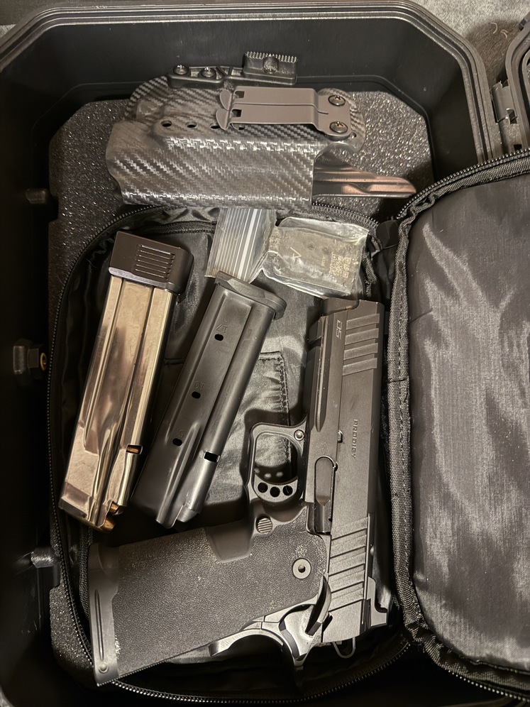 Springfield prodigy 4.25, 9mm. All adapter plates are there as well as the soft case and a holster from muddy river tactical.