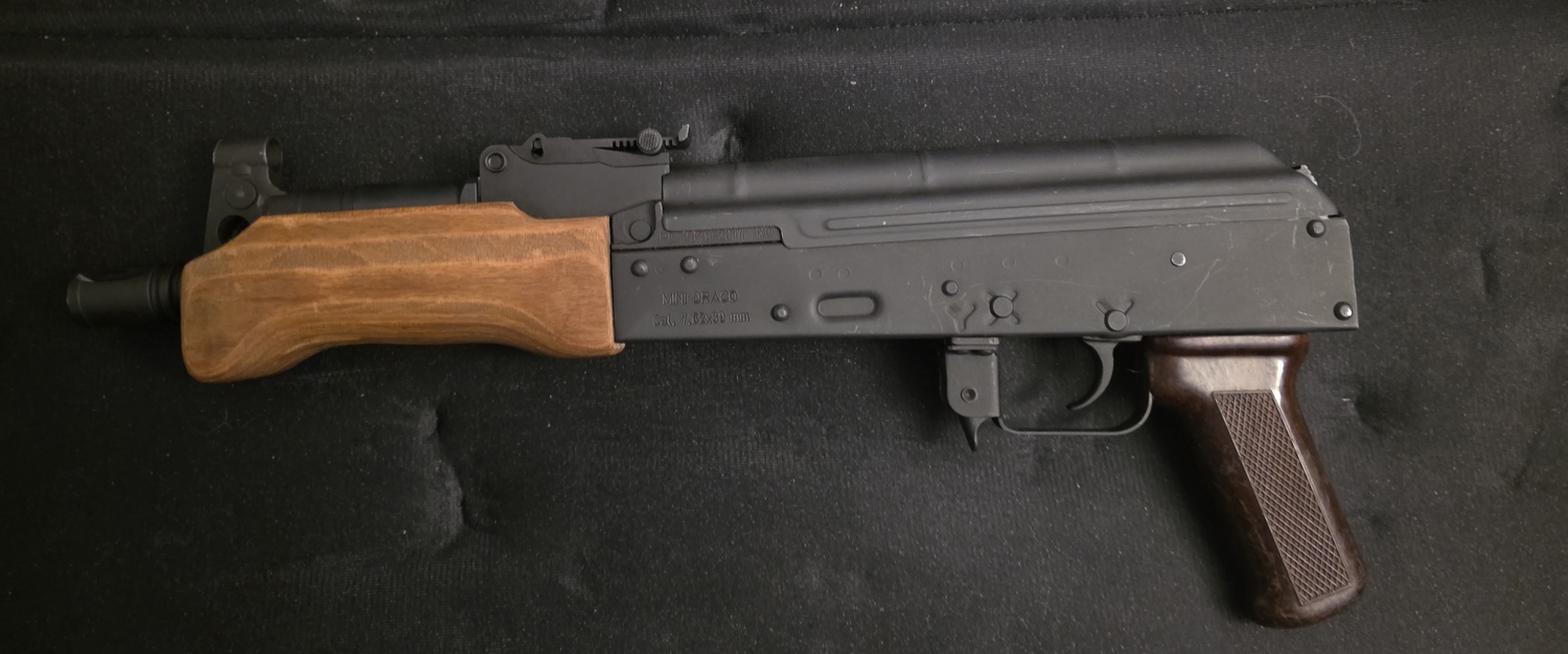 Romanian Mini Draco for sale brand new never fired. Does not have factory box or manual. Sale is for firearm and one 30 round mag. Asking 800.00. Caliber. 7.62x39mm. Action. Semiautomatic blowback. Capacity. 30 1. Barrel Length. 7.75 in. Overall Length. 17.50 in. Weight. 5.65 lbs