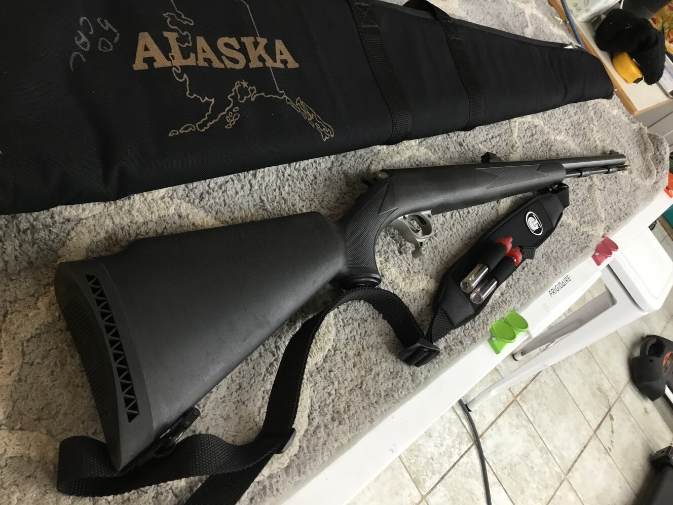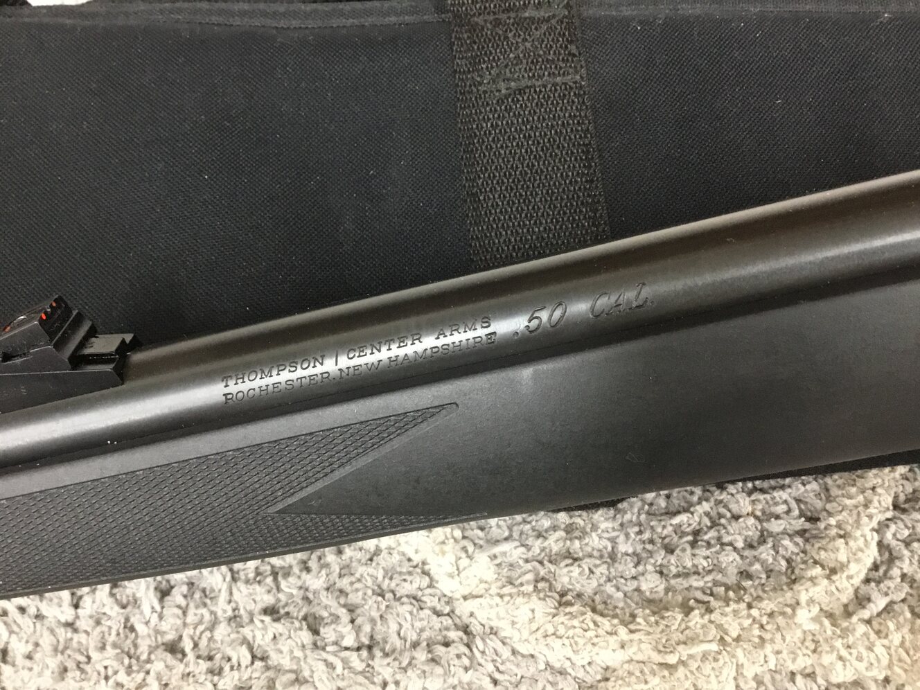 Thompson Center Omega Z5 .50 Muzzleloader. Original owner.New condition.Note important 28” barrel. Uses 209 primer. KCarry Sling with ammo inserts.Case.Lots of extras .Everything needed to clean and do maintenance.Powder and assorted bullets. Amazing sights.3” group at 100 yards with a 464 grain bullet?Used it on a moose hunt on base. Hits like a freight train.Calls only
