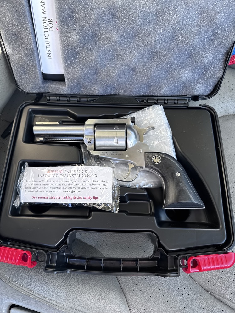 Brand new in the box Ruger super black hawk 44 mag. This is a special run talo edition. The barrel length is 3.75 inch. I am not interested in selling at this time but I am looking for trades for certain firearms. I am looking for. Other big bore double action revolvers. Medium and big bore lever action rifles. Medium and big bore CRF bolt action rifles. I am not looking for. Ruger super Redhawks. Semi auto handguns. Ar 15 and Ar 10 style guns. Ak-47s. Non CRF bolt action rifles. Non stainless steel guns.