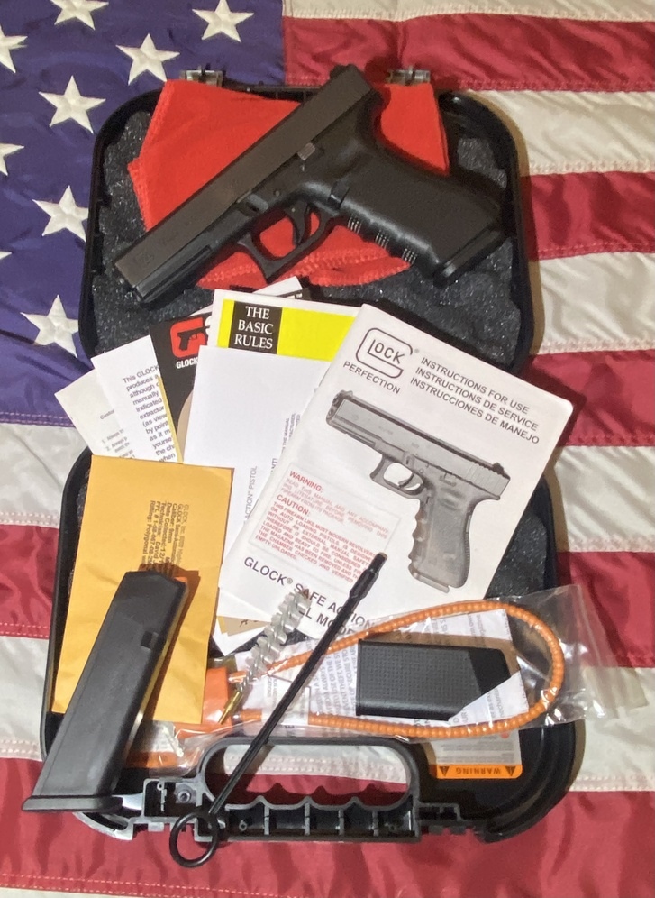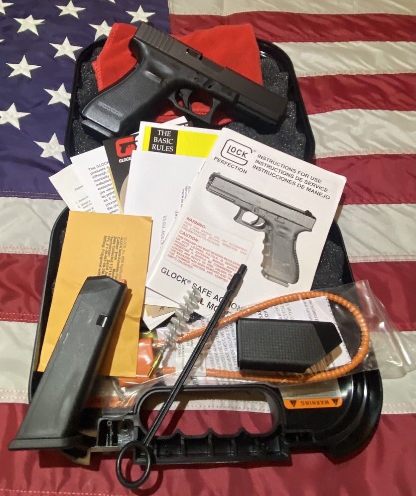 Very Nice Glock 17 Gen 4 Police trade-in with the early sought after durable frying pan finish. Comes with original blue label box and accessories. These are difficult to find and its condition for a police trade-in makes this one a rare find and desirable example. Must be willing to complete a 4473 at Arctic Ammo in Wasilla, seller to pay the $10 processing fee.