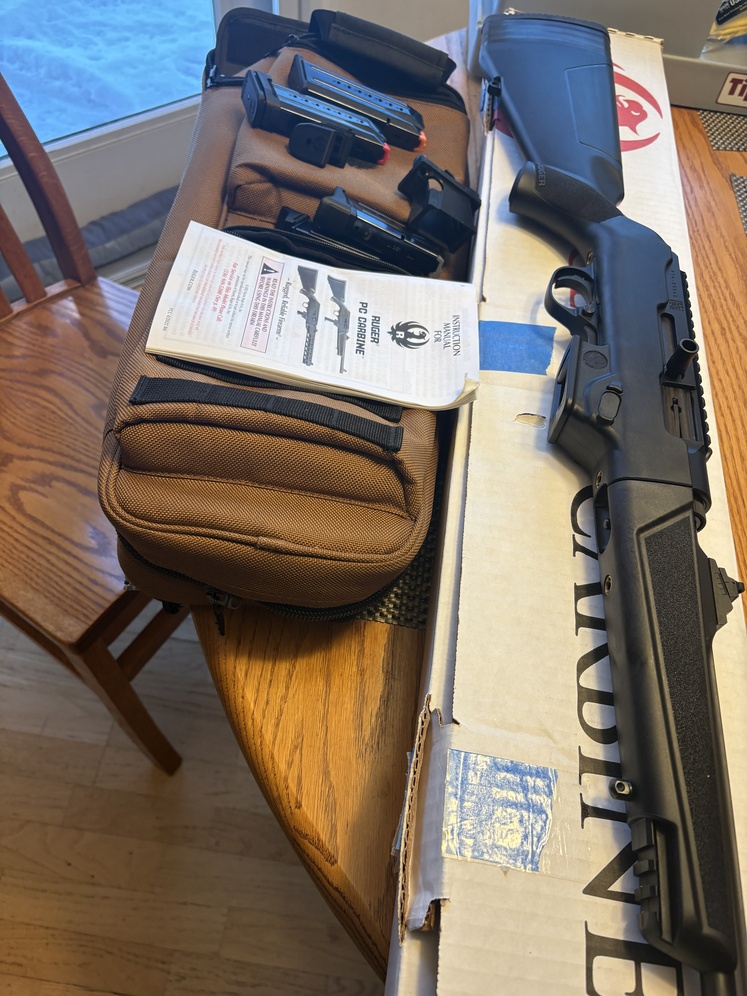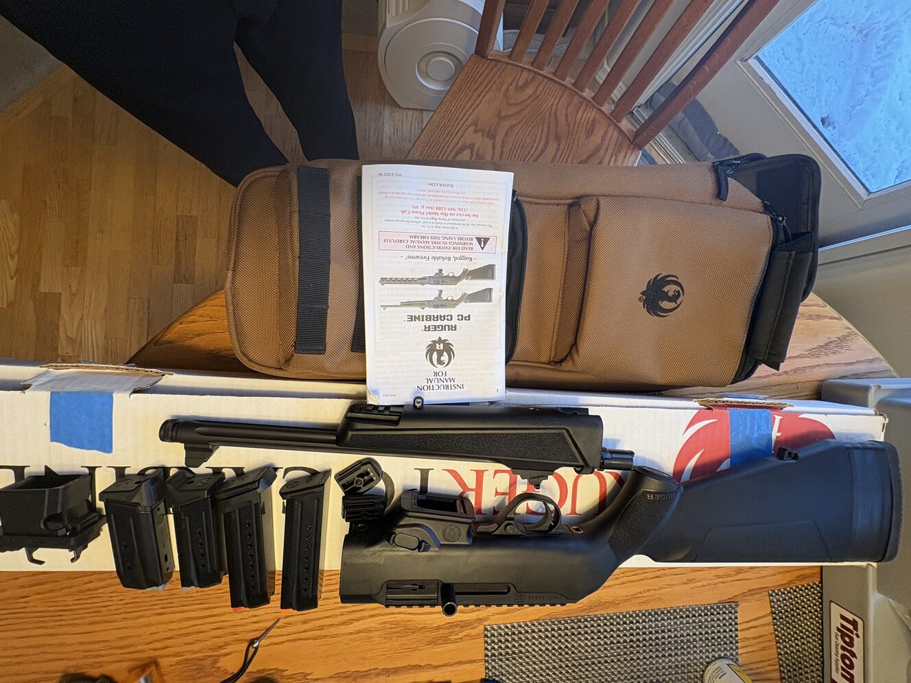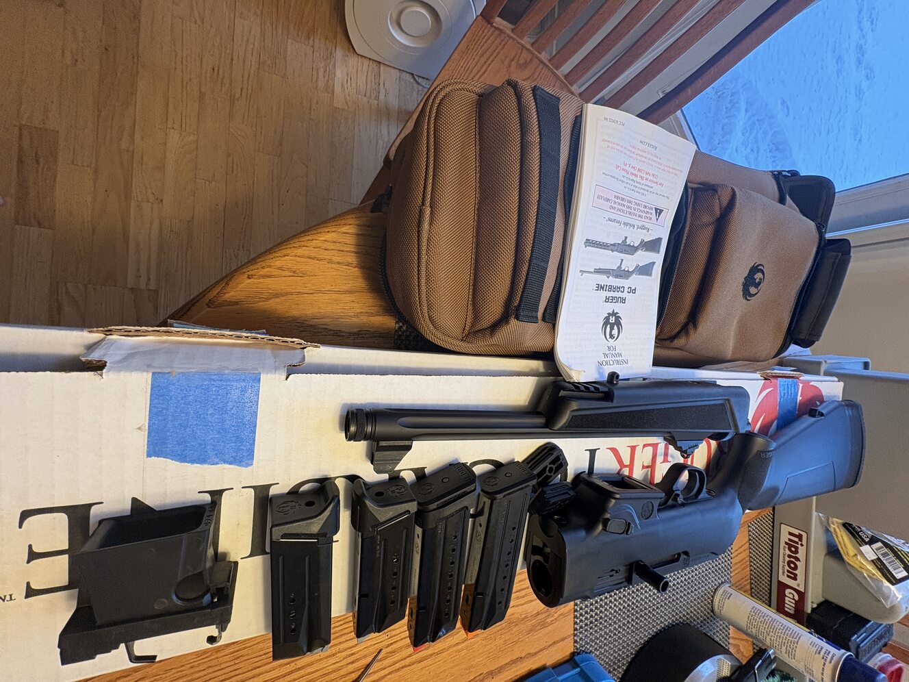 New in the box. Ruger 9mm Take Down Carbine Rifle. Four Magazines and a Ruger Back pack made for the rifle. $750. No trades, local sales only. Must be legal to own a firearm.