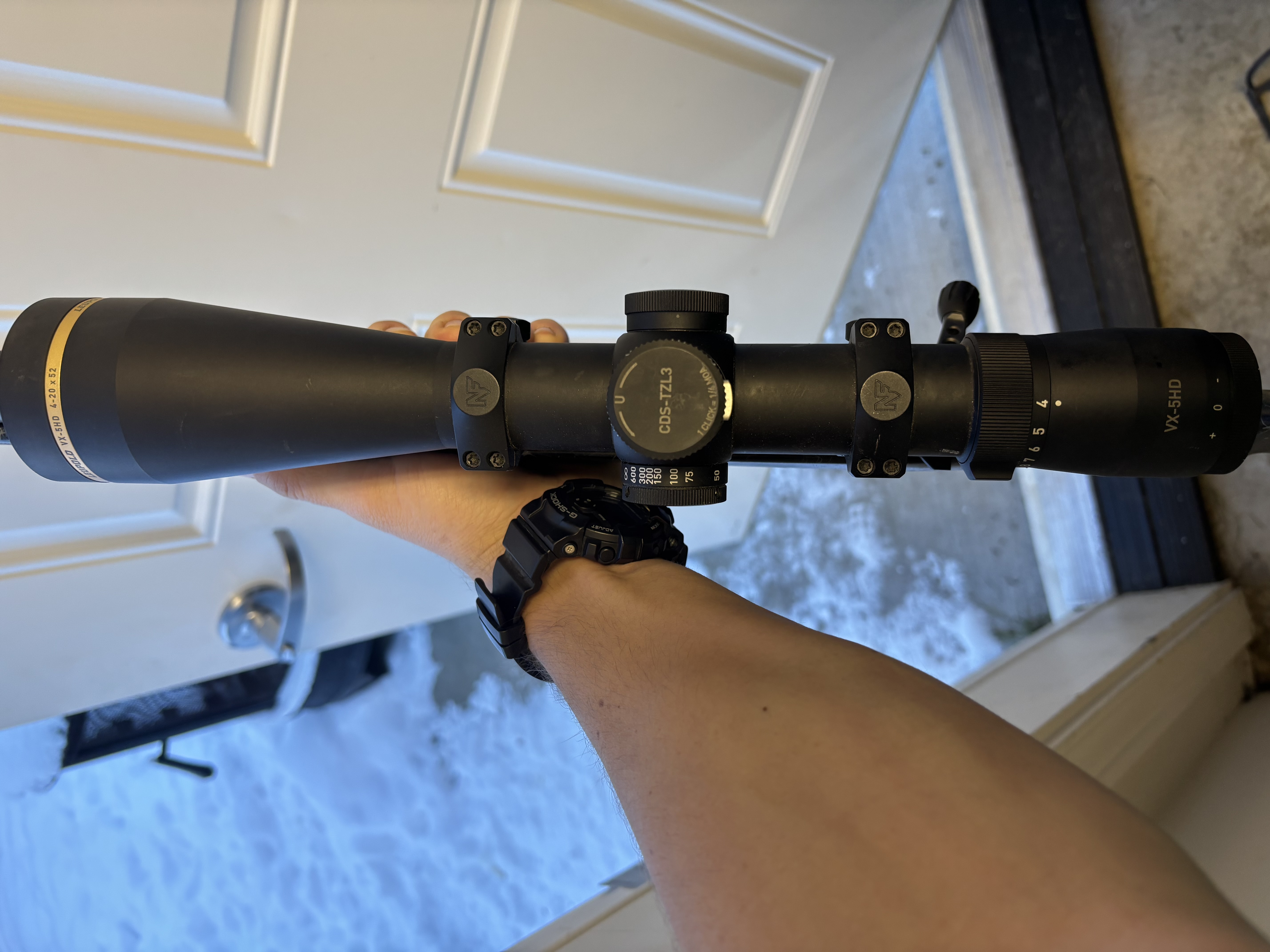 Gun with a vx5 HS 4x20 leuopld scope with night force rings. Great shooting gun but I’m transitioning to a lighter custom rifle. Have take two goats, two caribou and a wolf with this rifle.