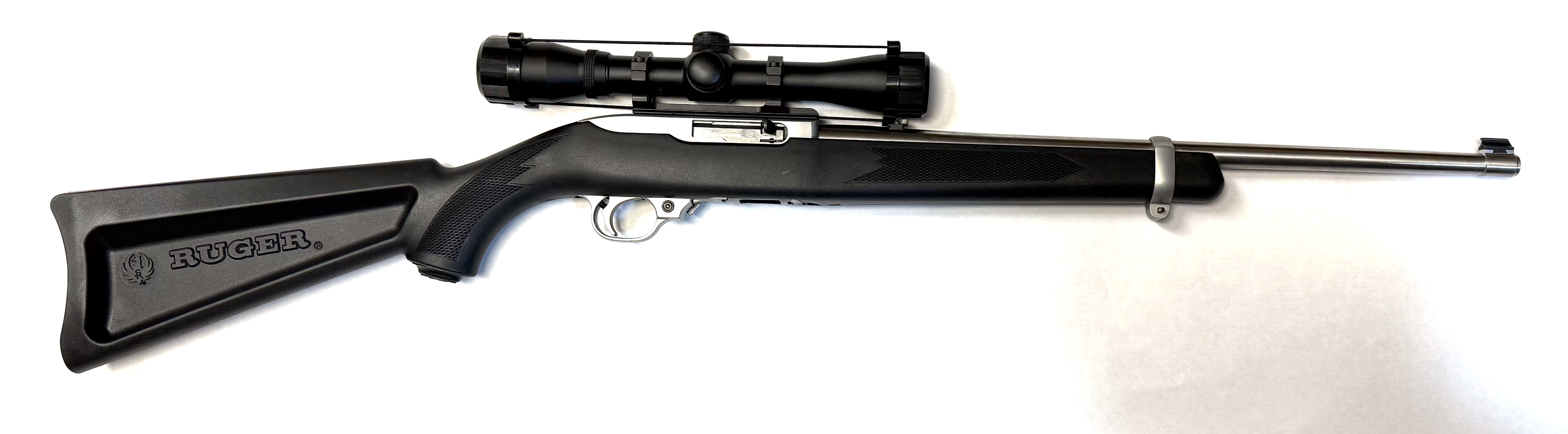 Ruger 10/22 Stainless Steel Rifle with an 18" barrel and Tasco Pronghorn 4 x 32 Scope. Has skeleton stock. Unfired... New Old Stock. Available for pick-up In Talkeetna by Alaska Resident or may deliver to Wasilla depending on my schedule. Can Ship Direct to Buyer / Resident in Alaska ONLY! Other Buyers Must Provide FFL USA Sales Only. Not Sold Where Prohibited
