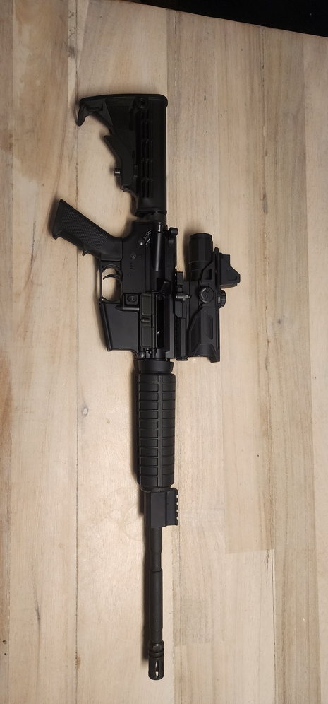 Basic Palmetto State Armory AR-15 in 556. Comes with a cheapo scope (no extra charge) and 2 mags. Hit me with a reasonable offer.
