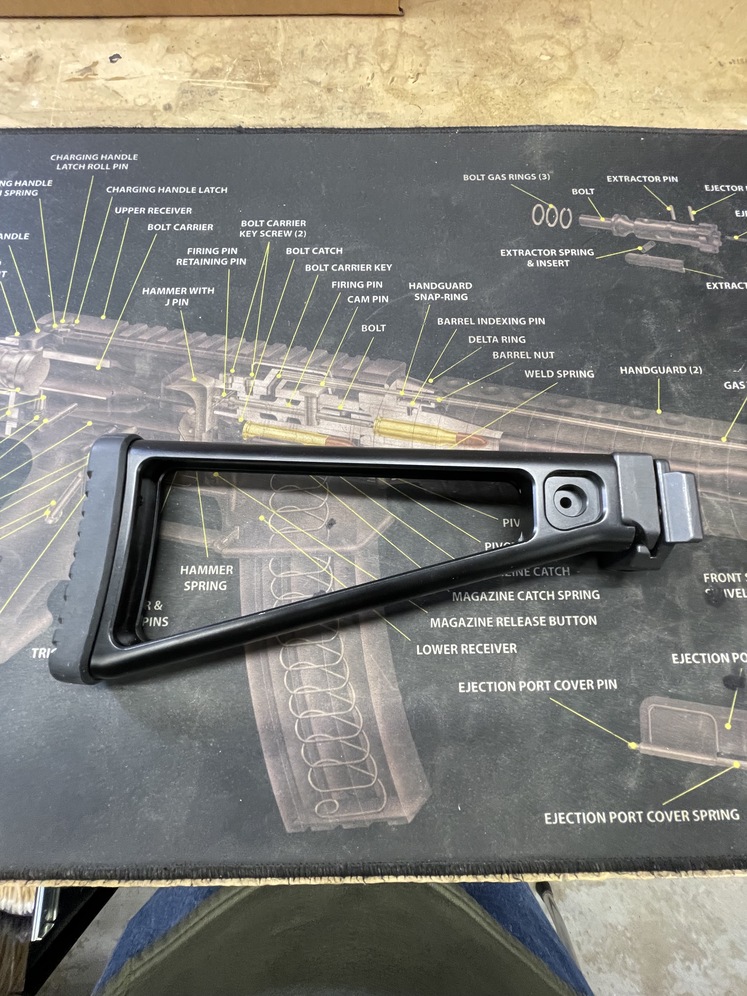 Like new folding stock that mounts to a pic rail solid lock up. Text after 0900am and before 900pm