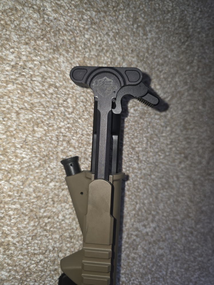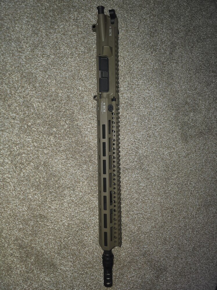 14.5 non pinned, FDE, 5.56, enhanded extended GI charging handle, keymo muzzle. Low round count, little to no wear.