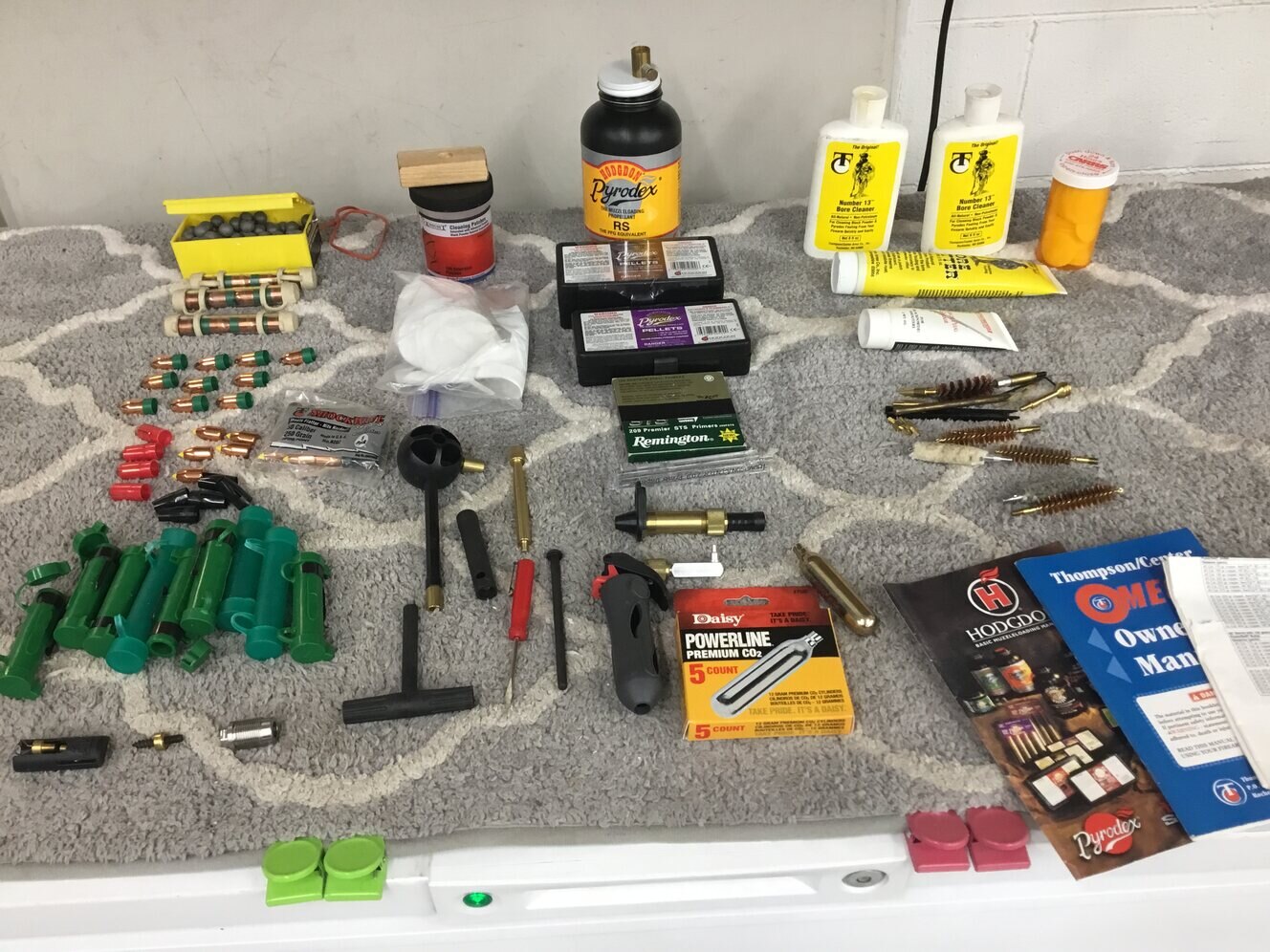 New condition.Loaded with all the accessories you will need to shoot and clean.Manual for information .Pic will show the added accessories and please price them out.Thompson Center 28” barrel.50 caliber.Fiber optic sights.Case. Used 209 primmers . Shoots 465 grain .Throwing in for free a Bushnell 3.6 to 10 power scope wide angle. Great gun used for my moose on base.Scope really not needed sights are super. Calls only