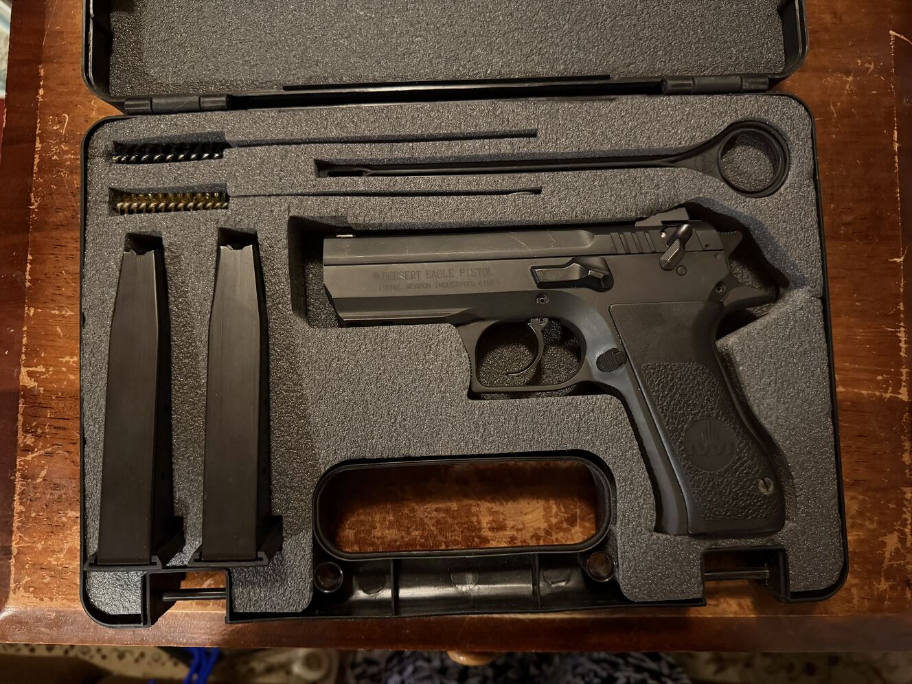 The gun is in excellent condition. I’ve owned it for years and will never use it. This is the IWI version made in Israel. It comes with the original case and magazines.