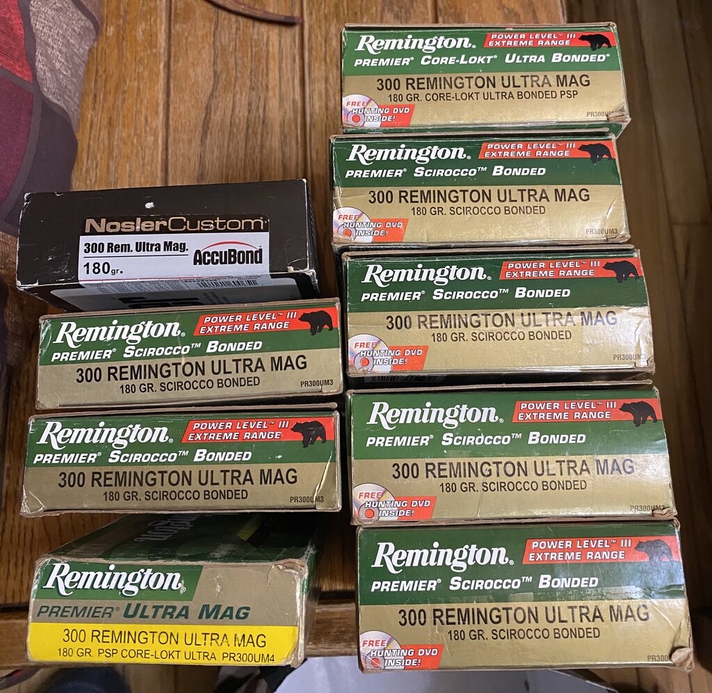 9 factory boxes of 300 RUM ammo. $550 for the lot. I might consider trades. Call or text me if interested at 406-493-7904. I will be in Fairbanks today January 6th