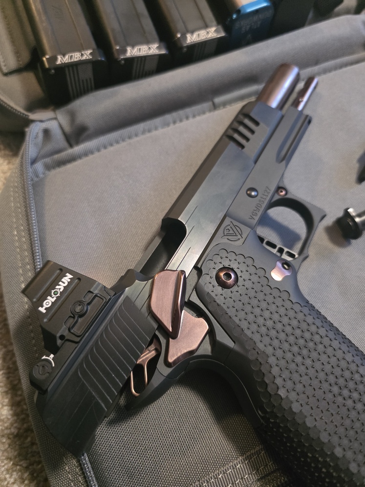 Low round count. Pre vudoo ownership change. 2011 Vudoo priest 5in 9mm. All stainless steel. All DLC slide high points polished (slides like glass). Small parts and barrel PVD polish. 2.5lb trigger red dirt flat faced. Dawson tooless guide rod. Atlas thumb gas pedal (original included). Atlas left shielded safety (originals included). Large and tactical magwells included. 4 slide cuts either side. 2 Atlas mags 3 brand new mbx 24 round mags. A beautiful one of one Vudoo Priest. Will take cash. venmo preffered. Optic not included. Gun belt optional. can be worked out if interested. Will take offers or trades. preferably a similarly priced prs gun or multi trade. Thanks!