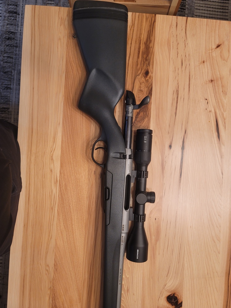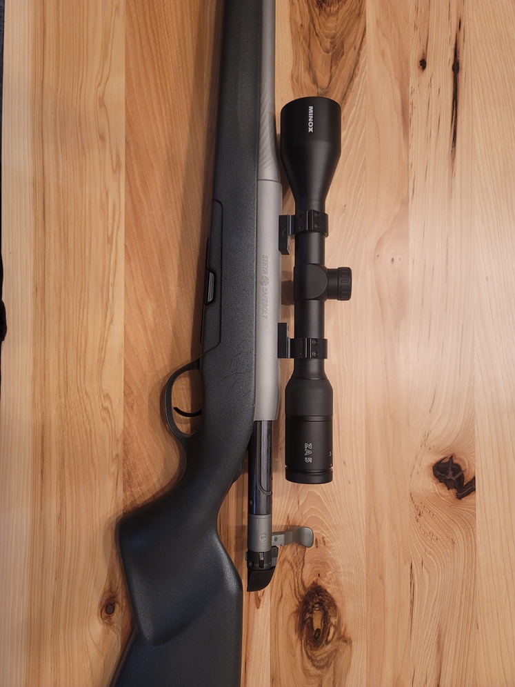 Steyr Pro Hunter Stainless in 20 -06 Rem. Minox ZA5 3-15 X 42. Talley Lightweight rings. 1 X magazine. Modified and Cerakoted bolt handle to clear scope. Will Trade for Ruger Guide Gun in anything but 375 Ruger or a Ruger Gunsite Scout in 308 Win. Stainless Model, 16 or 18 inch barrel. Dont call or message me and tell me you are busy and will come later, just call me when you are ready.