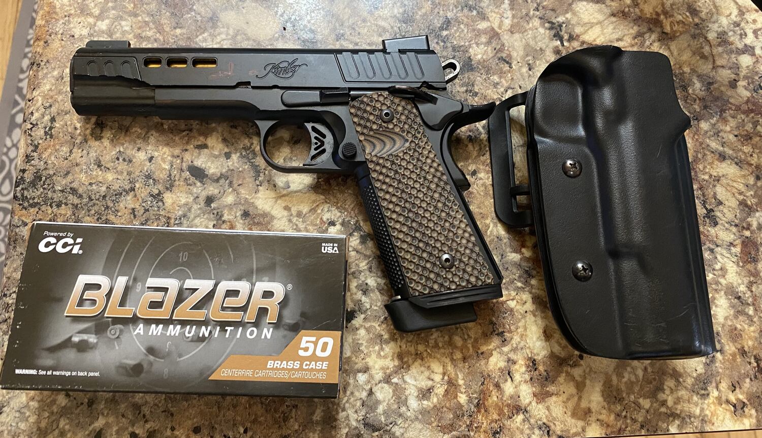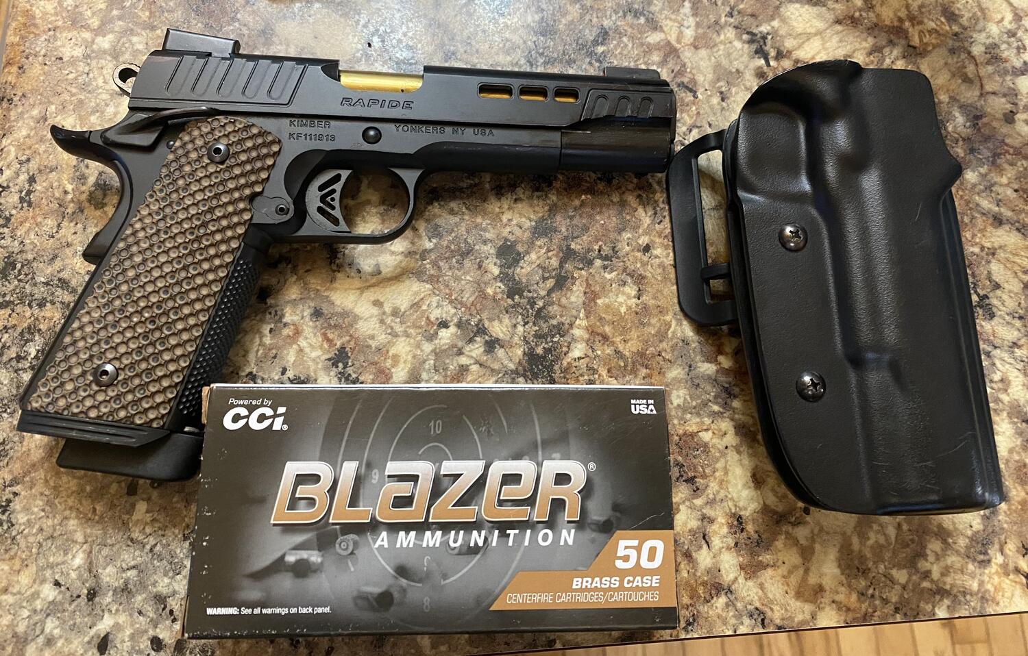 Kimber 1911 Rapide 10mm, this is a limited run custom shop model. It is all stainless and cerakoted black feom the factory with Tru Glo TFO night sights. Comes with upgraded grips, Bladetech holster and a box of ammo. Has slight holster wear from carry. $1000. Not interested in trades. Call or text if interested.