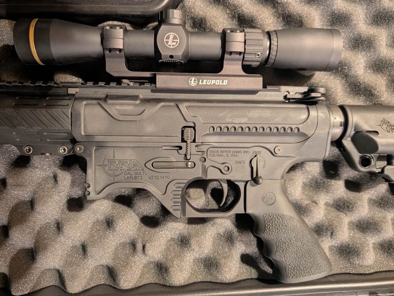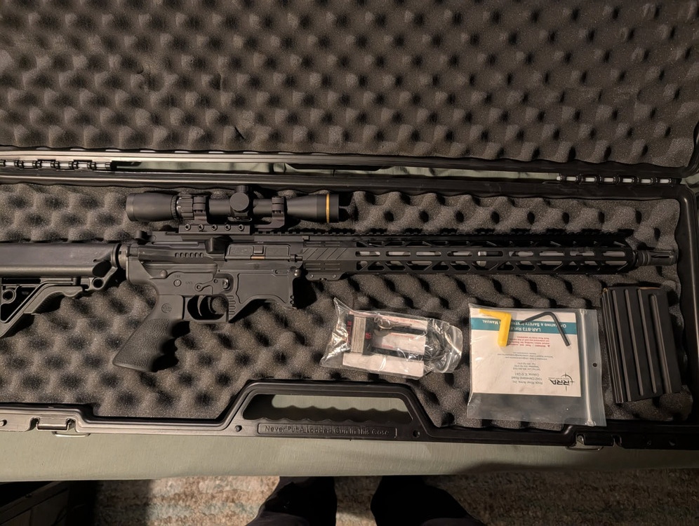 For sale is a premium large-frame AR platform built on Rock River Arms’ LAR-BT3 billet receiver set, paired with a Leupold VX-Freedom 2–7×33 scope.