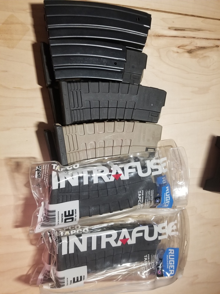 9 tapco mini 14 30rd magazines, 3 ruger brand magazines 2-30rd 1-20rd