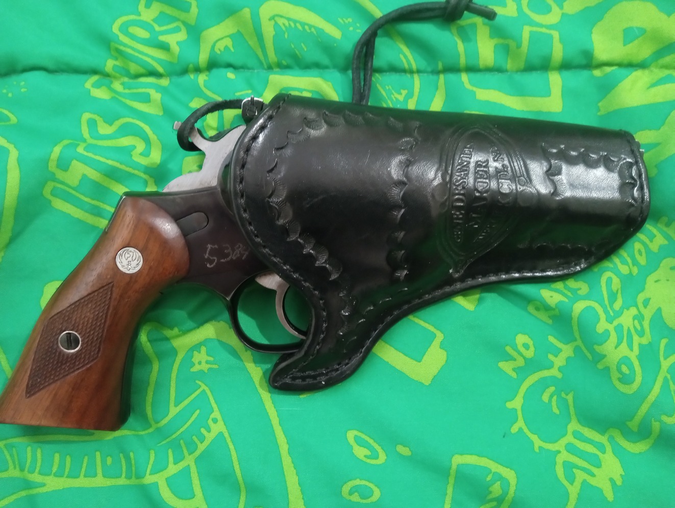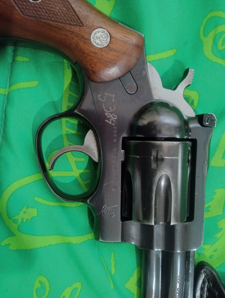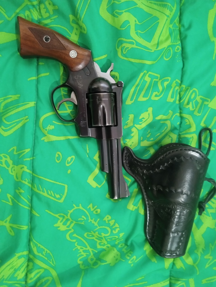 carried a lot by a security guard fired very little, first year production, notice the thinner barrel than on later models, so balanced and nice in the hand. Fully adjustable sights, works perfectly, original owner had their security number lightly electro penciled into the frame, would be easy to buff out but never bothered me. Includes a very nice leather holster. Nice revolver in a great caliber. A part of American history. I will be in Anchorage too.only those over the age of 21 and Alaska residents please.