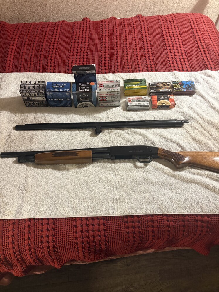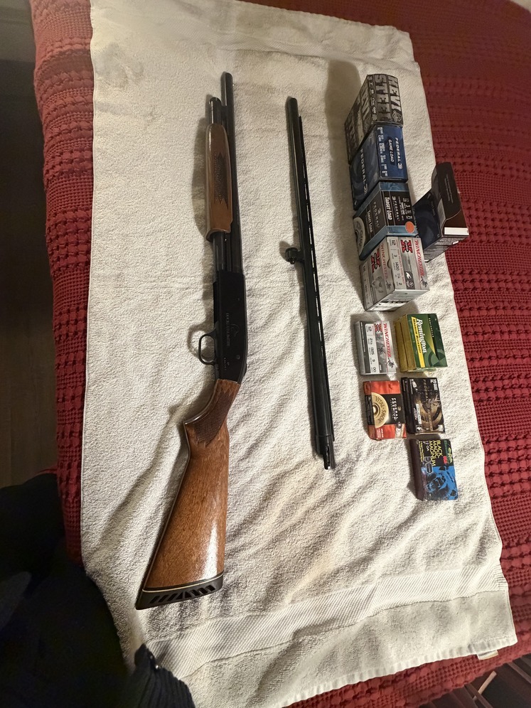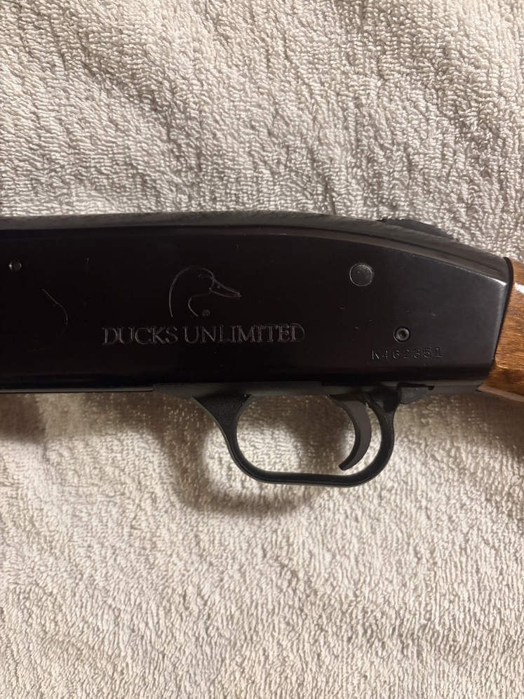 For sale only, no trades since we are moving out of state. Mossberg 500 pump shotgun. Comes w 28 inch barrel and additional 18 inch barrel + shells. Good condition, hardly used the last few years. It is stamped w Ducks Unlimited so I guess it was a special edition or made for a raffle. I purchased from Cabelas 7 years ago and have fired less than a dozen rounds through it in that time. Price is for everything. Comes w a variety of shells, from birdshot to buckshot to slugs.