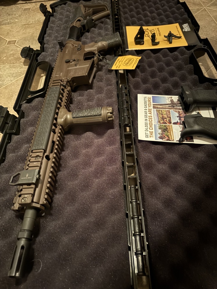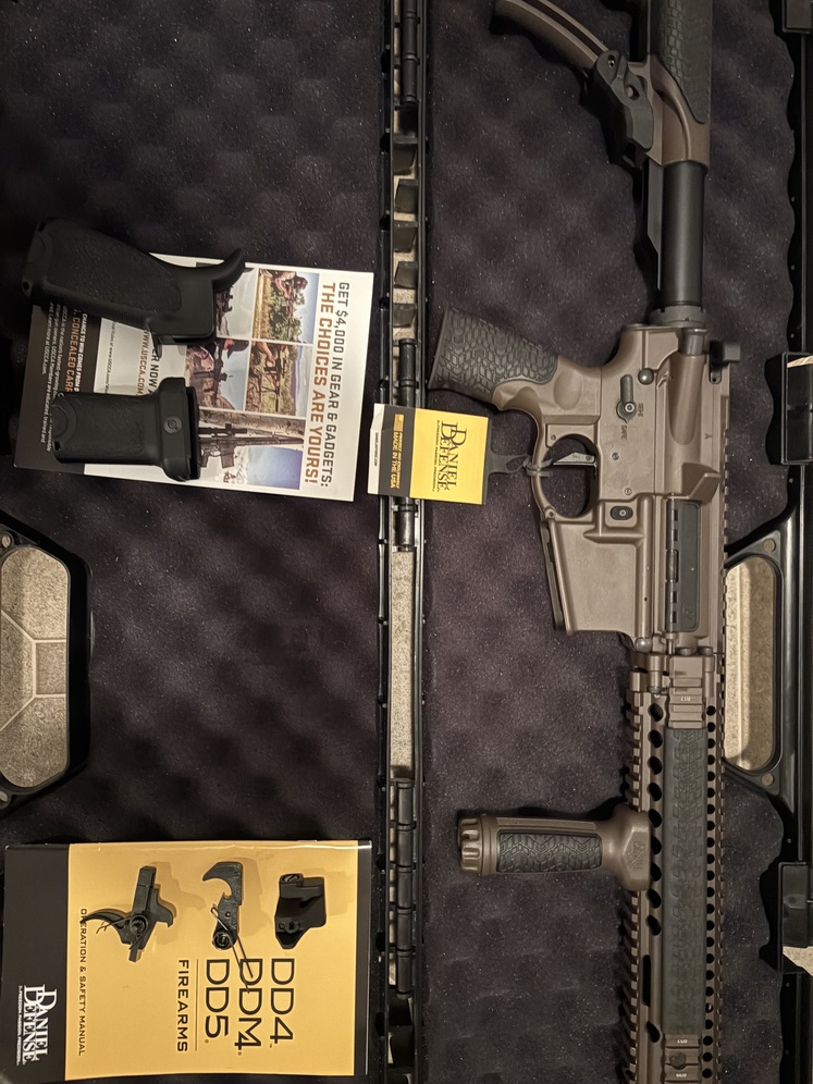 Up for sale is a Daniel Defense M4A1 with the milspec+ finish. This rifle has a 14.5 inch barrel with a pinned and welded muzzle device to bring the length to 16 inches. The rifle has been upgraded with a Geissele SDE flat trigger with the original trigger included in the sale. The rifle will also come with a BCM pistol grip and foregrip if you decide to swap it out. I have also included a Troy fixed front sight and the box. This deal is more than fair so I won’t entertain lowball offers. Will only sell to individuals who can legally own and possess firearms in Alaska.
