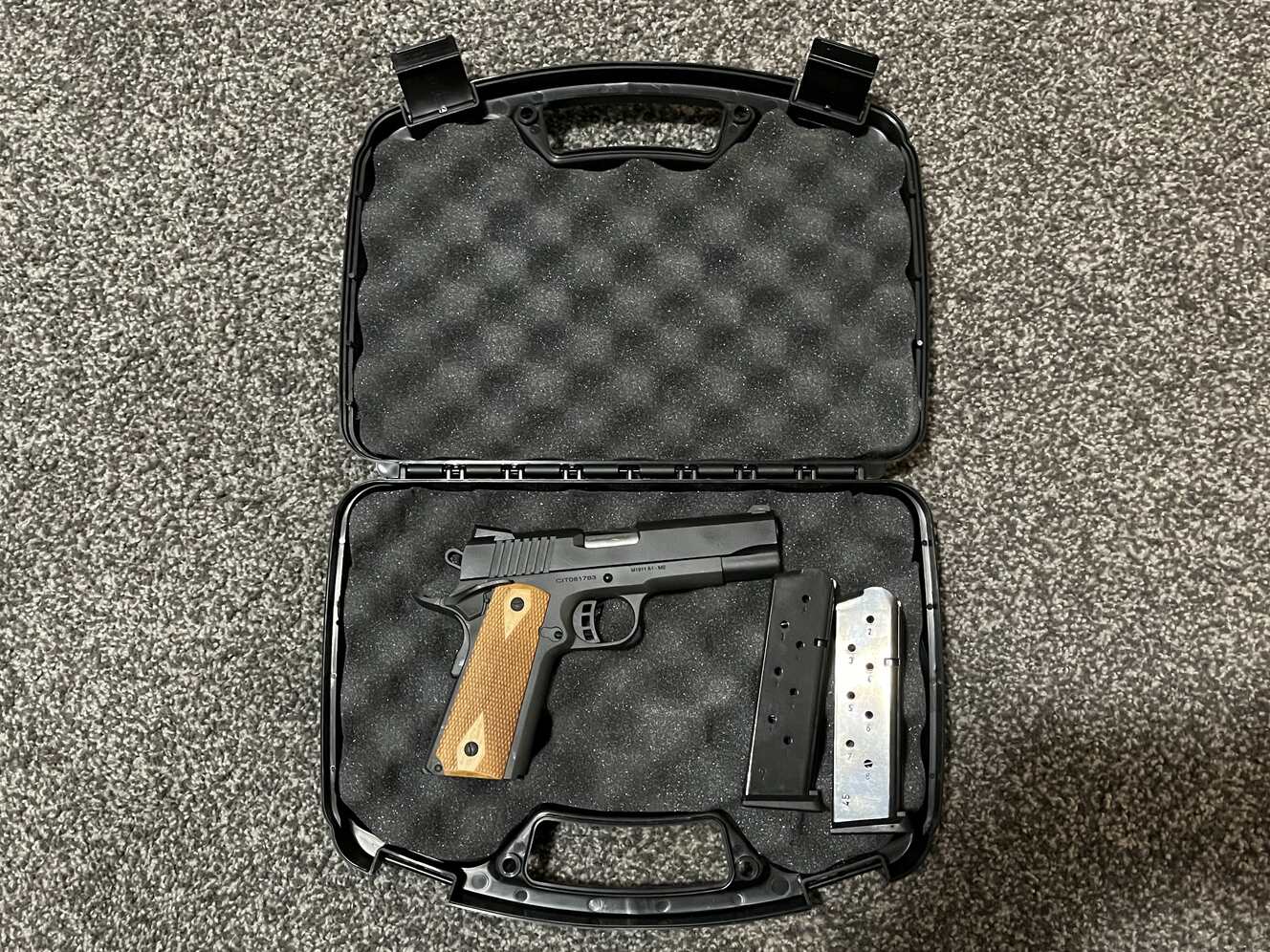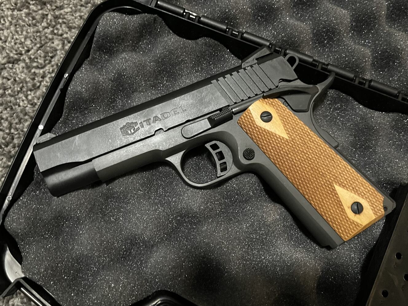 Selling my new in box Citadel 1911 Commander length 1911 in 45 ACP. Comes with two 8 round magazines. It's new in box, got it on an impulse and decided I didn't need it. Has Novak Style sights and nice tight lock up. Also has ambi saftey. Text works best due to schedule.