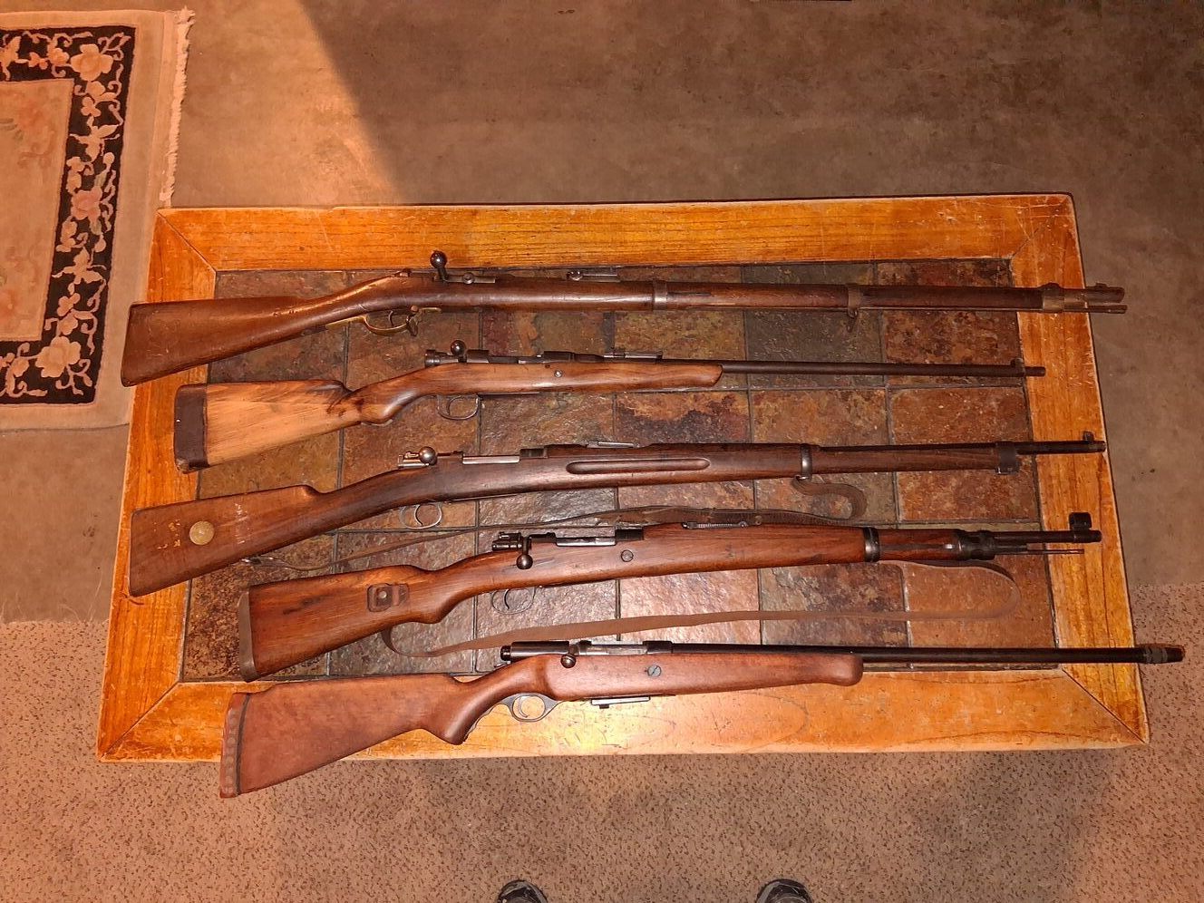 5 guns Mod 71 1878 11mm mauser Japanese Arisaka 1903 Carl Gustav 6.5 Swede Spanish 8mm mauser Mossberg 20 gauge bolt. $2000 cash might have some ammo to with test is best. Sold as a package deal only will not sell separately.