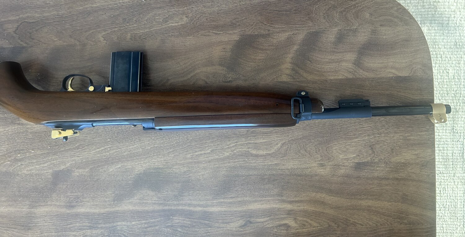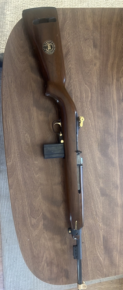 I am selling a Commemorative M1 carbine receiver says inland but believe it is a reproduction. It has some scratches in the finish and the rear sight is loose but it is still a nice gun. Has one magazine. Caliber is 30 carbine, model M1 carbine, possibly make is Inland probably reproduction.