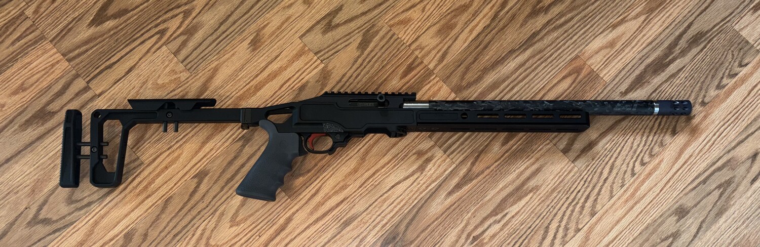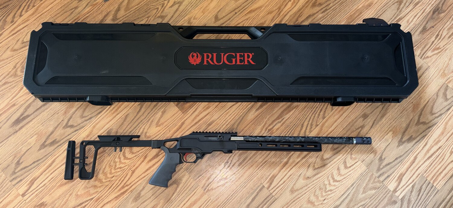 Ruger 10/22 Carbon Fiber .22 LR. Lightly used. Grey Birch Chassis with M-LOK and Arca-Swiss compatibility and ambidextrous QD points. The stock is adjustable for length of pull and cheek height and folds for easy storage and transport. Hard-coat anodized, CNC-machined receiver with integral, optics-ready 30 MOA Picatinny rail for increased long-range elevation capabilities. Match bolt release allows you to easily advance the nitrided bolt with a quick pull and release to the rear. Cold hammer-forged barrel tensioned in carbon fiber sleeve features a 1/2"-28 threaded muzzle and compensator. BX-Trigger® with a light, crisp 2.5 - 3 pound trigger pull weight. Two 10-rd and two 25-rd magazines. Also includes: hard case; Ruger Custom Shop® Certificate of Authenticity, challenge coin, cleaning cloth and decal. Cash only. Text preferred.
