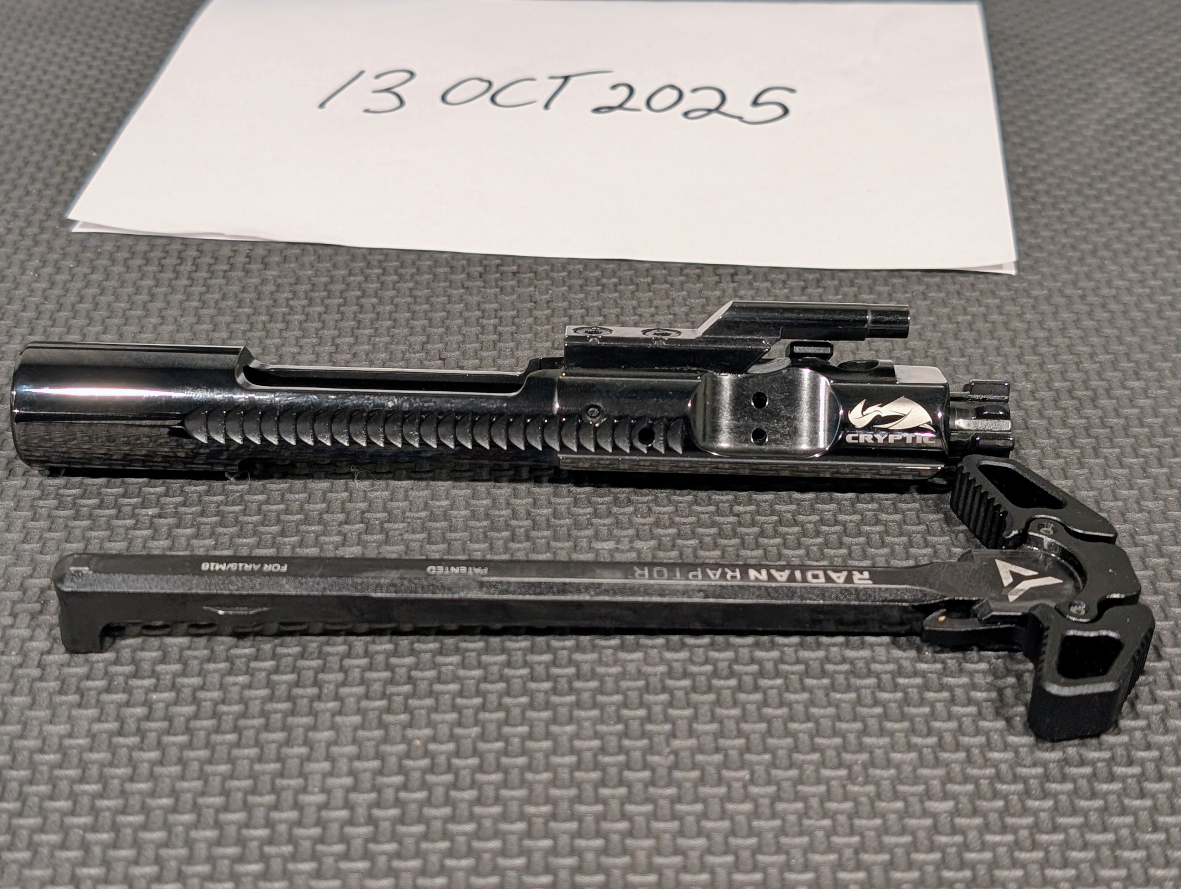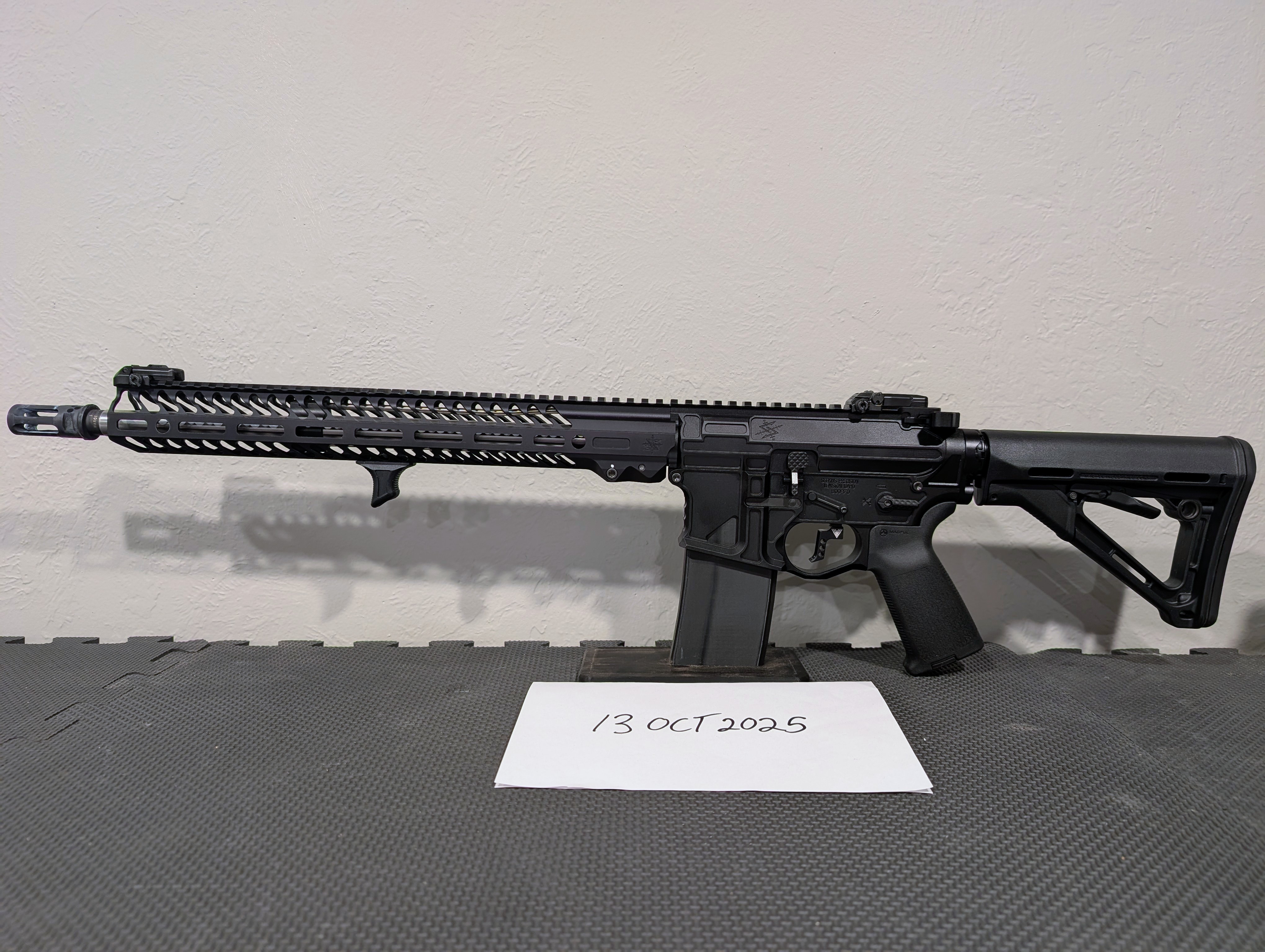Get a very solid, professionally built SPR at an unbeatable price. Parts: SureFire closed tine Warcomp. 16-inch Krieger 416R stainless tactical profile 1.7.7" twist (midlength gas) barrel chambered in 223 Wylde by Compass Lake Engineering. Seekins Precision adjustable gas block. Seekins Precision NOXs handguard. Magpul Pro backup iron sights. Slate handstop. Seekins Precision NX15 upper and lower receivers. Seeking Precision lower parts kit with ambi safety. Magpul MOE grip. Velocity Systems MPC trigger with straight textured trigger shoe. 3.5lb fixed trigger. KNS Precision antirotation pins. Cryptic Coatings Mystic Black bolt carrier group (my preferred even after using Sionics NP3, Geissele REBCG, Microbest, and JP). Radian Raptor ambi charging handle. milspec carbine buffer tube. Fortis LE K2 endplate/castle nut. Magpul CTR stock. H1 buffer. I've had this custom rifle since 2022. The upper was inspected. assembled. and tested by the awesome gunsmiths at Trajectory Arms. It functioned flawlessly for the 200 rounds I've put through it. I'm ashamed that I didn't shoot it more. It's in excellent condition and gives a lot of bang for the buck. Sale within the Fairbanks Borough is preferred. Cash preferred. All parts listed will be sold as a package deal only. Will not sell separately.
