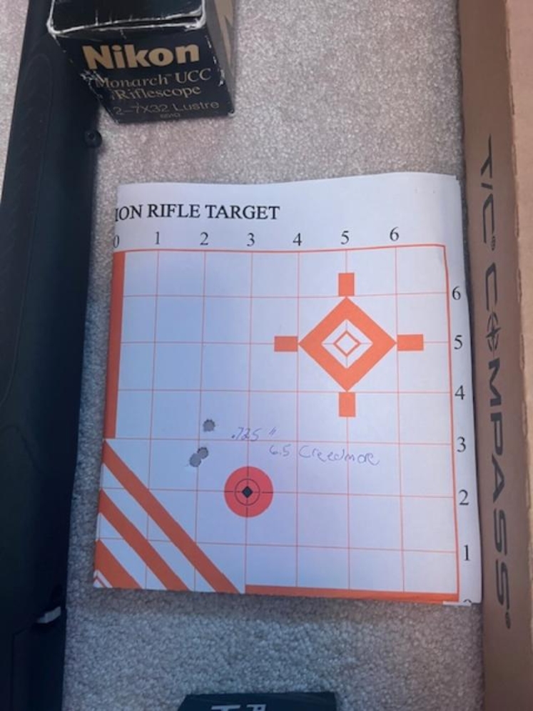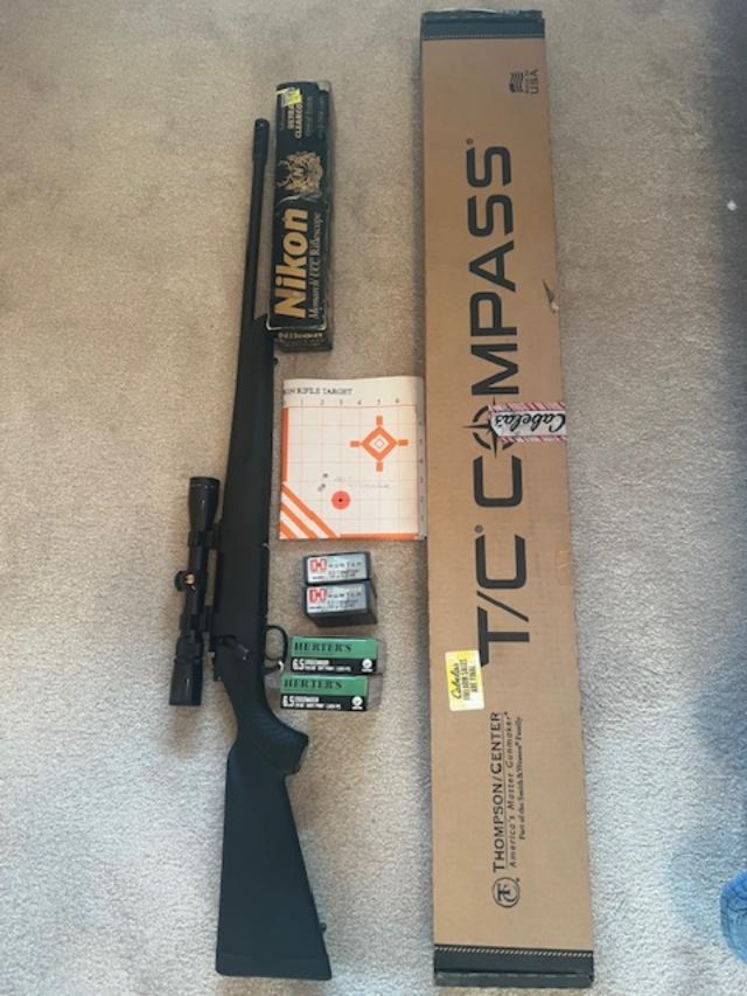T.C. Compass 6.5 Creedmoor just sighted in. Like new. Includes: Nikon Monarch 2-7 rifle scope New muzzle brake 2 boxes of ammo and brass for reloading. Original box. Original owner. A dream to shoot and accurate.