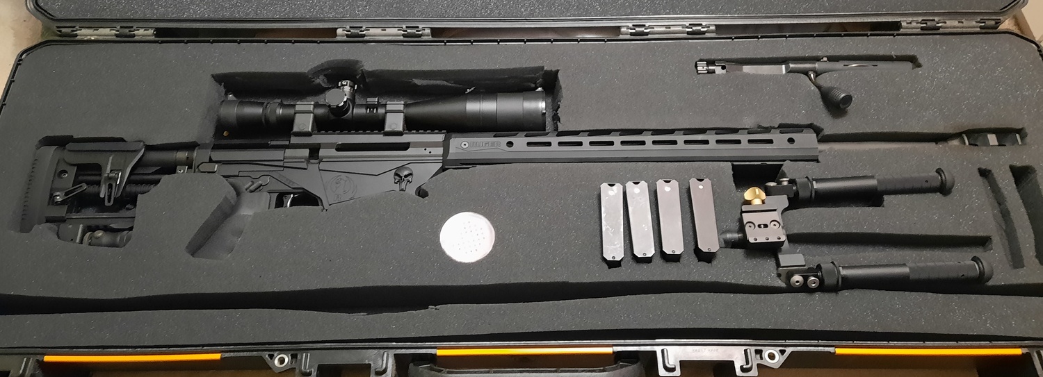 Ruger RPR 338LM with Leopold 8.5-25x50 w/sunshade mounted on Badger Ordnance Max 50 rings, Flatline Ops tube mounted bubble level, AccuShot monopod, Hogue overmolded grip, Anarchy Outdoors trigger shoe (removable), Catalyst Arms Mag release extension, Precision Armament TBK bolt knob, 4 Accurate steel magazines, Atlas BT72 NC Super Cal bipod w/Area 419 Arcalock clamp, Pelican Vault case and 21 boxes of Hornady ELD Match 285gr. All in like new condition and well maintained with around 200 rounds through it. Using my Kestrel and Leica range finder at Talkeetna last time out, I was hitting clay pigeons at 1000 yards. Over $4000 into rifle alone and over $3000 in ammo. Selling as a package deal due to leaving Alaska later this year and driving through Canada and must ship everything that I can not take into Canada. I have already sold everything in my collection that I am willing to let go and must regrettably sell this as the last one.
