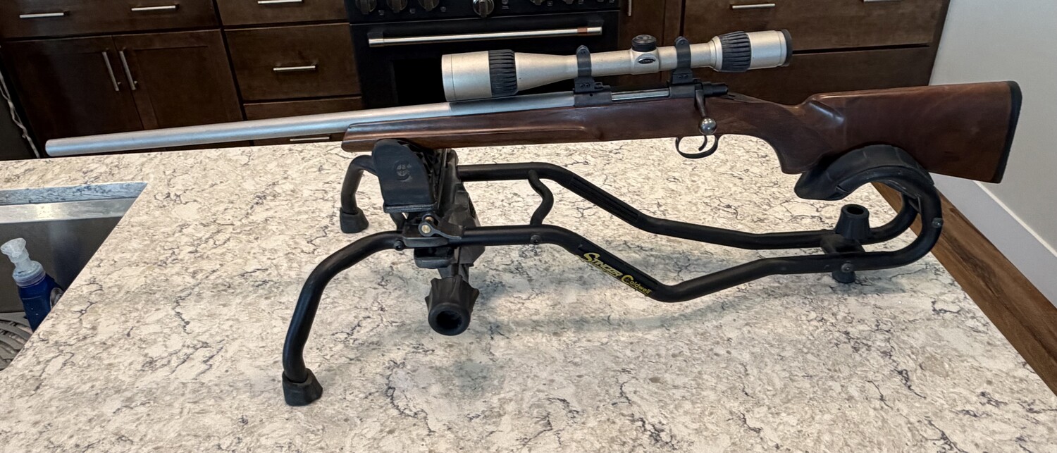 EXCELLENT CONDITION, FOR YOUR CONSIDERATION. THIS IS A COOPER ARMS OF MONTANA, MODEL 21, 223CAL SINGLE SHOT LEFT HAND BOLT ACTION RIFLE, 24″ STAINLESS STEEL HEAVY BARREL, EXC WALNUT STOCK W/ WEAVER GRAND SLAM 6X20X40 STAINLESS SCOPE WITH 1/8 INCH ADJUSTMENTS. COMPLETE WITH A CRISP 2 POUND TRIGGER PULL AND BLACK RUBBER BUTT PAD. EXTREMELY SMOOTH ACTION. THIS IS ONE AMAZING SHOOTER THAT DOES NOT COME UP FOR SALE OFTEN.