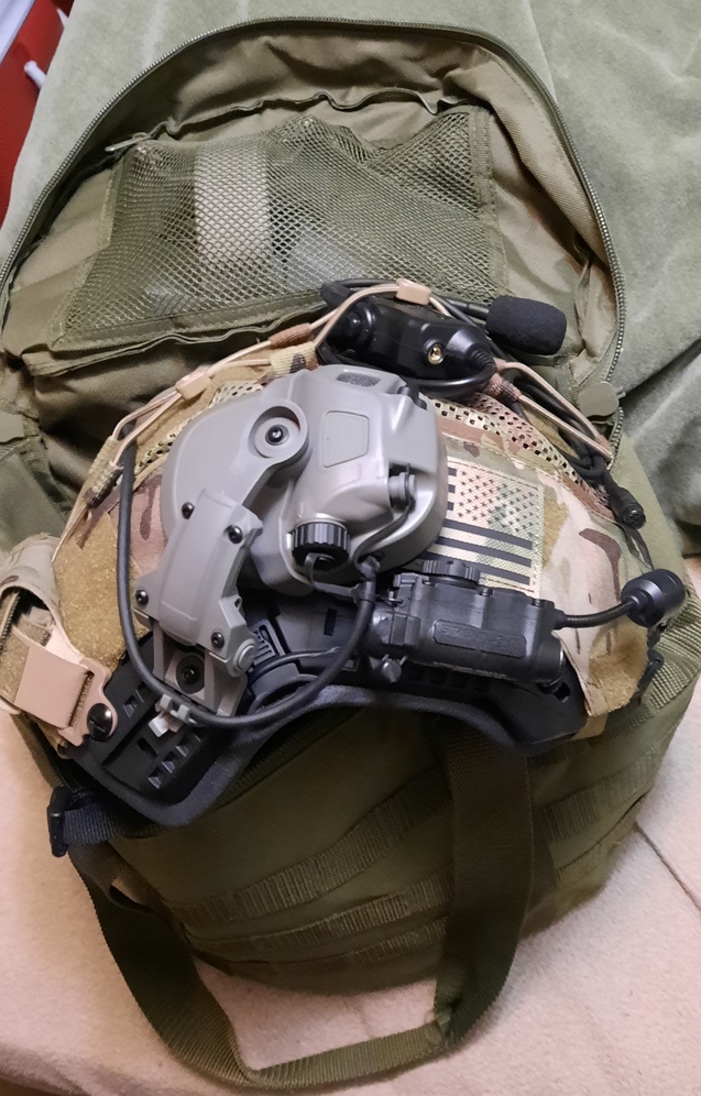 Full NV set-up with ballistic helmet included. Text for details