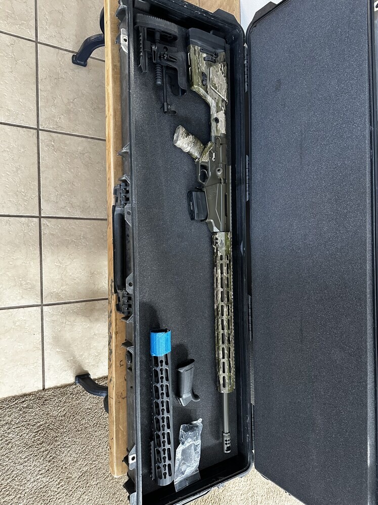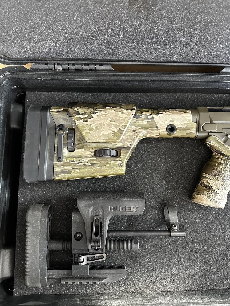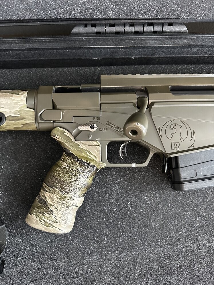 6.5 Creedmoor Ruger Precision Rifle Low round count, rifle has been Duracoated OD green I replaced the factory rail and furniture with an 18” Midwest industries Mlok rail, Magpul PRS stock, and Ergo grip pistol grip, furniture has been hydro dipped in A-Tacs camo. Seekins precision safety selectors. All original parts go with the rifle. As well as a pelican 1750 case. Open to possible trades for a Glock G45 or Sig Cross. $1500 OBO
