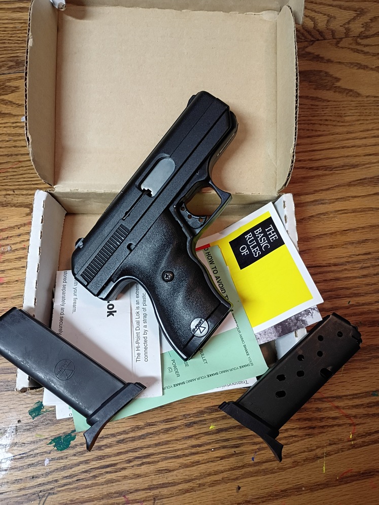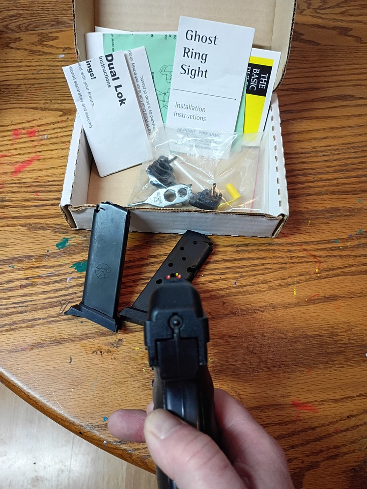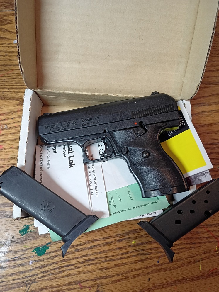 Hi Point compact polyframe.9mm. with ghost ring and tools and two mags.