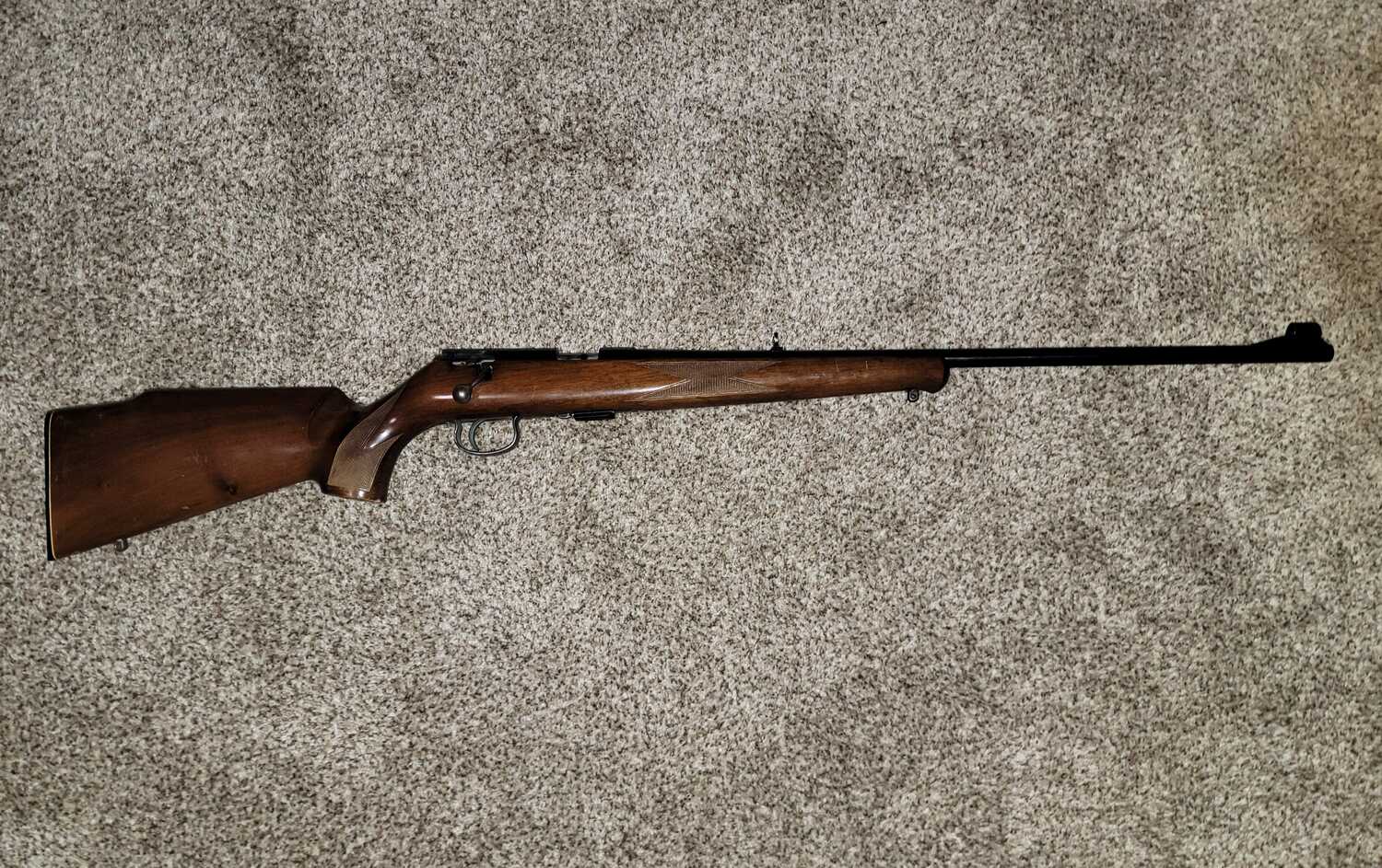 This is a Savage-Anschutz Model 64, bolt-action, 22 LR match rifle. Manufactured by Anschutz, marketed by Savage. Two mags. (I highly recommend a 4x scope, not included. Drives tacks.) $500 OBO (Flexible)