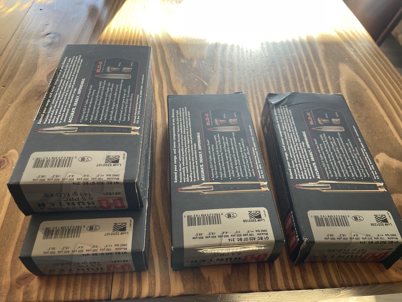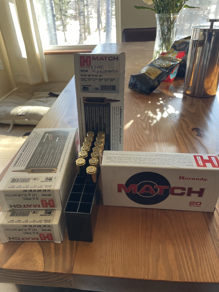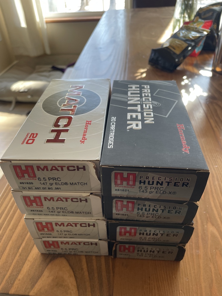 73 Hornady Match Rounds ($40 per box of 20) 80 (4 boxes) Hornady Precision Hunter ($40 per box of 20) Or $300 for all.. Lot numbers vary. Seen in photo. Selling because I sold my 6.5prc rifle and don't plan on getting another at this time.
