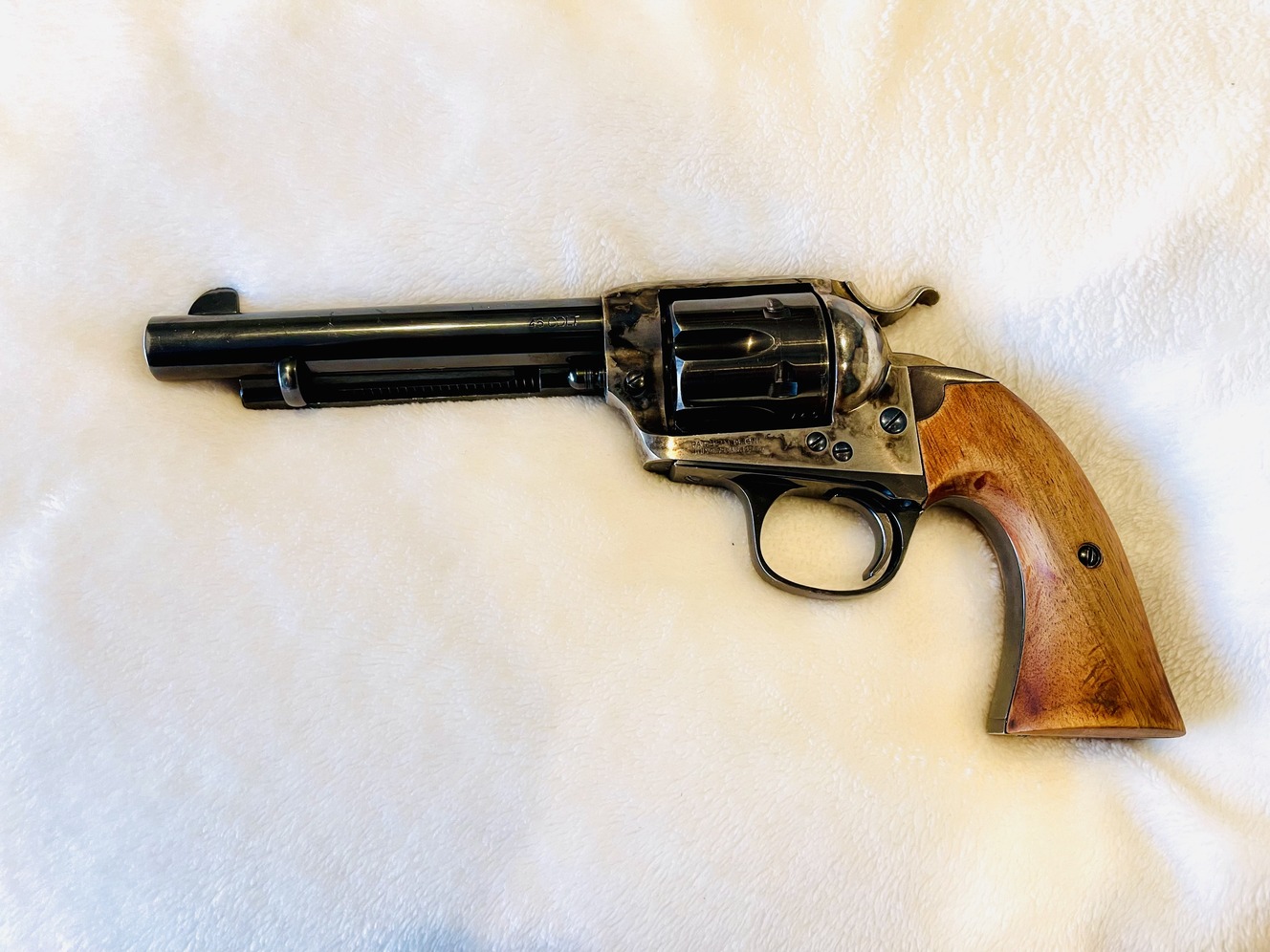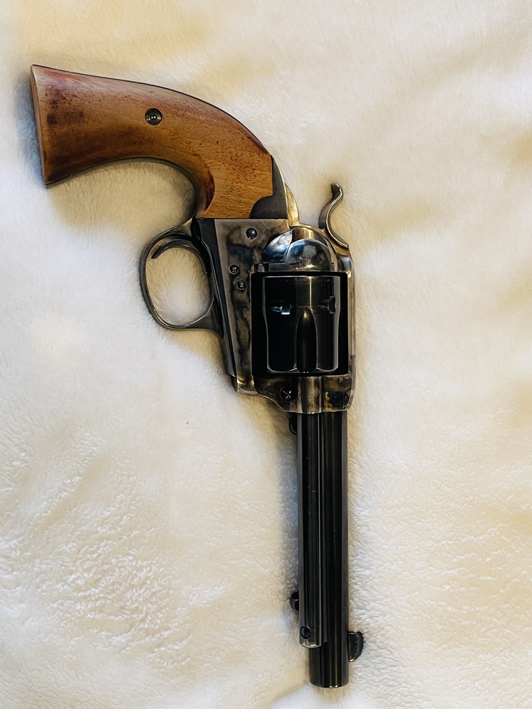 Action. SA Caliber.45 Colt Capacity. 6rd Barrel. 5.5 Blued Frame. Case Hardened Cylinder. Blued Grip. 2Piece Walnut Sights. Notch Rear Blade Front Length. 10.5 Weight. 2.61 lbs. The Bisley Target Model was introduced around 1895. The Bisleys' unsightly grip cannot be appreciated until one unholsters this arm and points down range. It is then that you will understand and appreciate the Bisley. The model's popularity was high with target shooters and lawmen because of its accuracy. Used but in great condition! Beautiful case hardened frame! Finish has very little wear and mechanically tight! Grips have a little wear on finish!