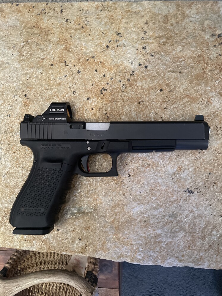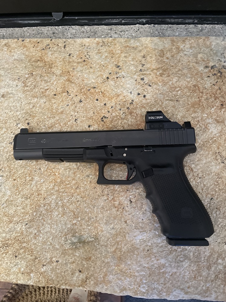 Glock model 40 10mm loaded Holoson 507c green Timmy trigger Kenai chest holster Invested $1400 Price is firm no trades