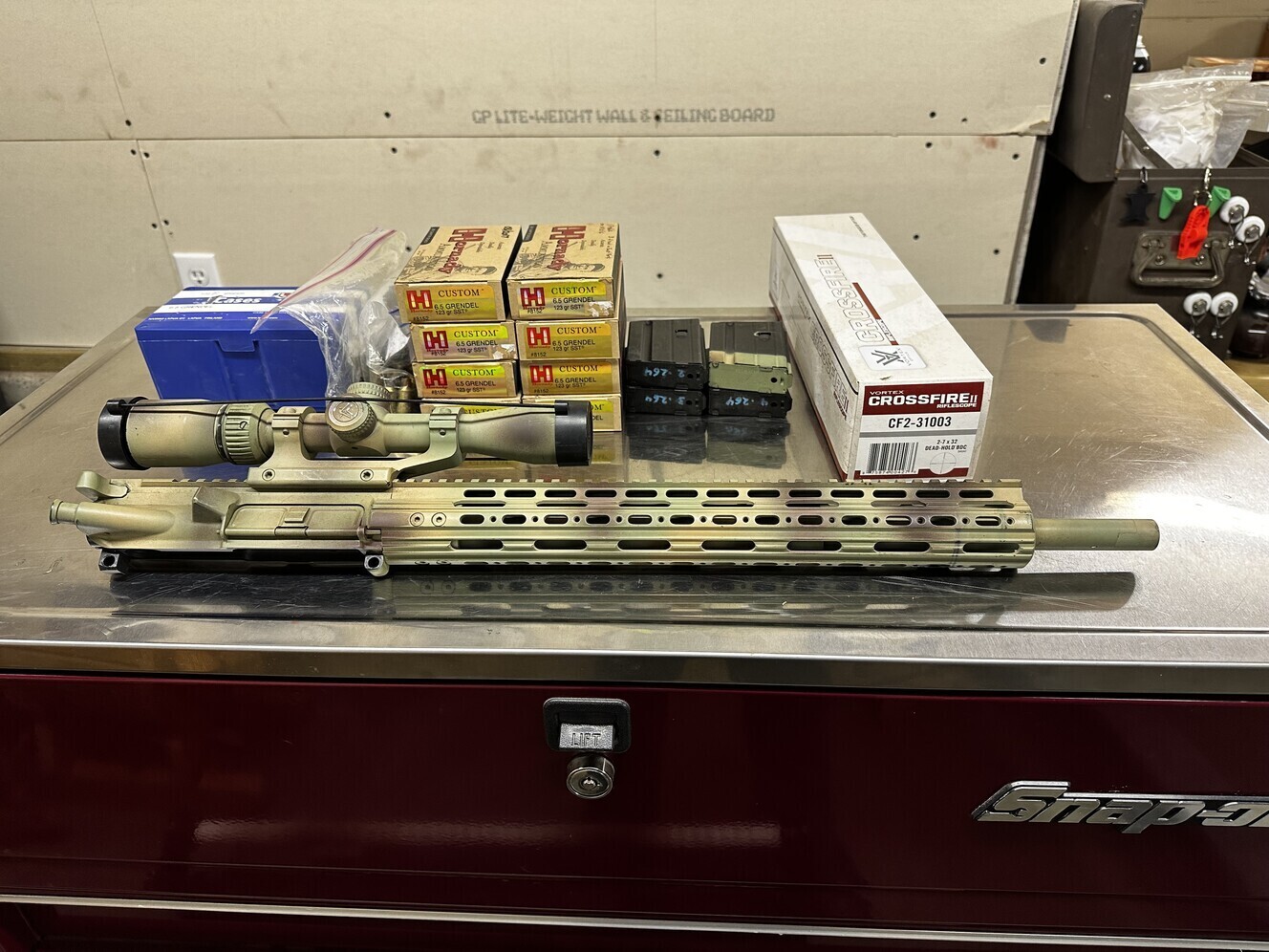 6.5 Grendel Upper group built on a PSA upper with a Blackhole Weaponry 18” stainless barrel. Has a vortex Crossfire 2-7x32 mounted in a Millet one piece mount. Comes with 4x C-Products stainless magazines, 160 rounds of Hornady 123gr SST, and 100 pieces of new Lapua Grendel brass $600 OBO will consider some trades. Text is best, thanks for looking.